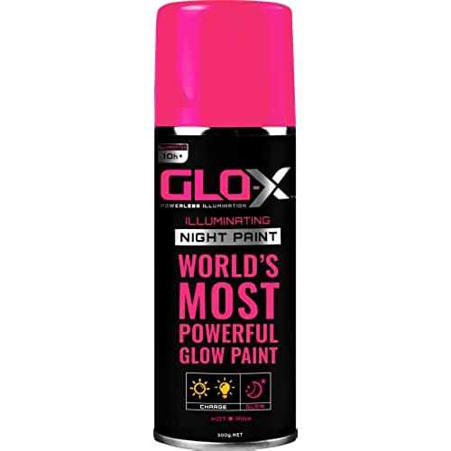 GLO-X Glow in the Dark Spray Paint – Hot Pink Spray Paint Glow in the Dark -Powered Light & Sun Activated Glow
