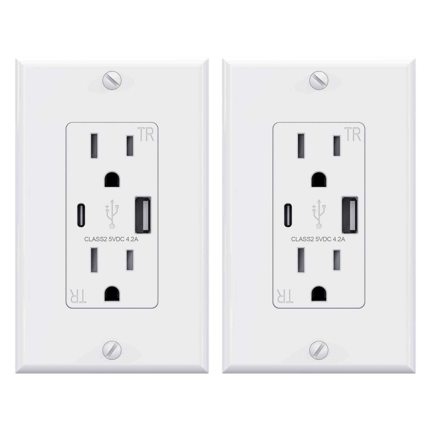 Utilitech 15-Amp 125-volt Tamper Resistant Residential/Commercial Decorator USB Outlet Dual Type A with Wall Plate R1615D42AC