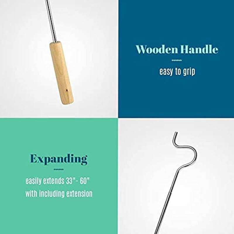 Closet Reacher Pole with Hook and Wooden Handle Heavy Duty Adjustable 2.75-5 Feet