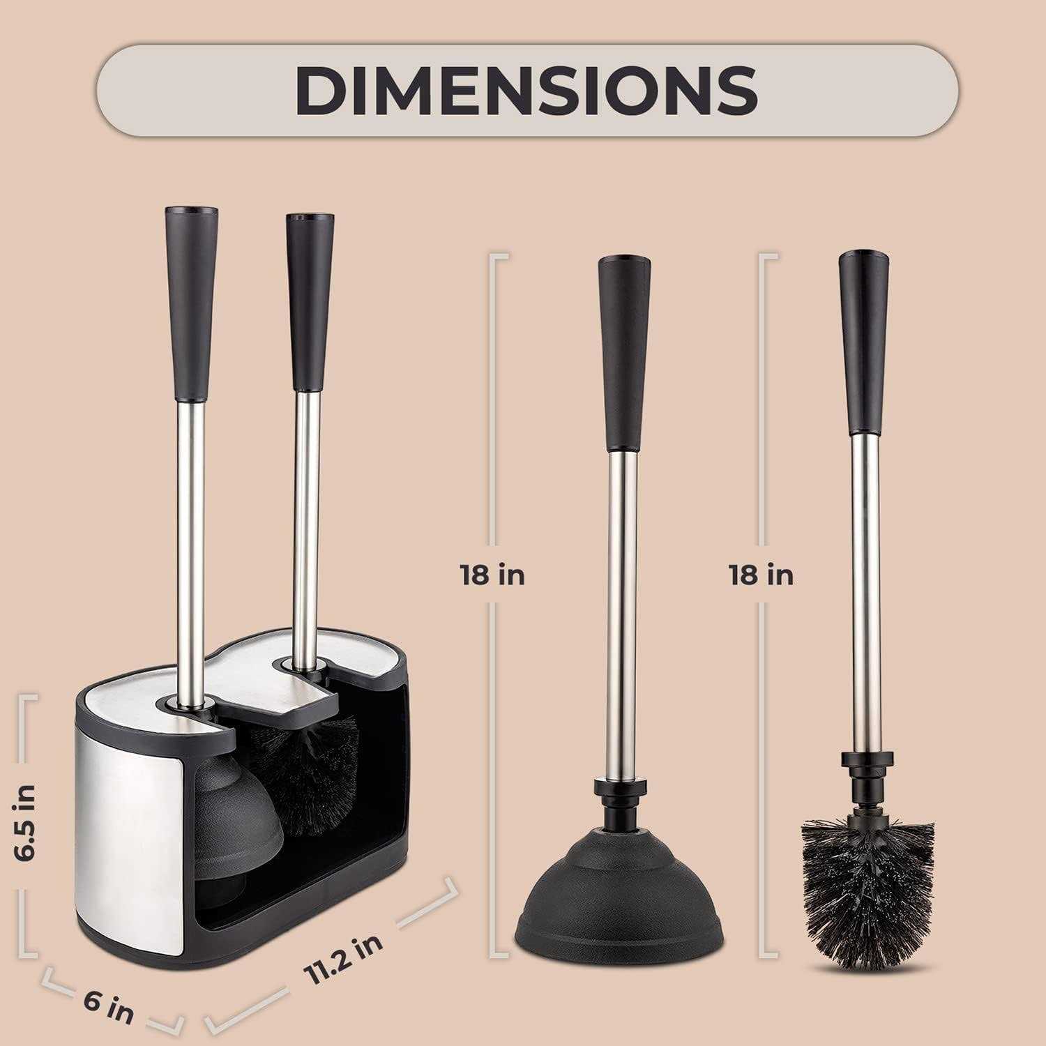 2 Pack UMIEN Toilet Brush and Plunger Set Stainless Steel Plunger and Toilet Brush Combo with Freestanding Canister