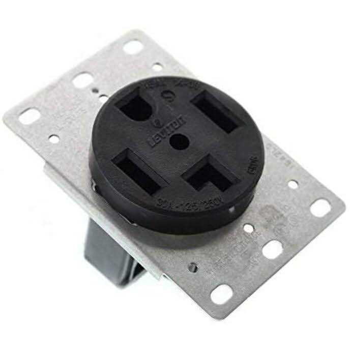 Leviton 30 Amp Black Flush Mount 4-Wire Dryer Power Outlet is a grounding outlet for dryers and fits a wide range of 2.15-in. diameter wall plates from Leviton. Constructed from durable thermoplastic, it withstands damage so it can last longer. It comes with heavy-gauge, double-wire copper alloy contacts. The terminals have ID markings in order to ensure correct and speedy installation. The lay-in terminals accept up to a No. 4 conductor. It is made for use with copper or aluminum.