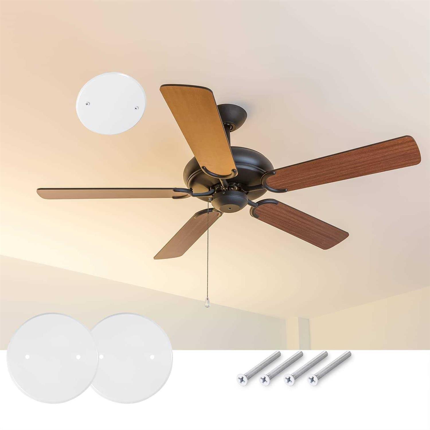 4 Packs 5 inch Ceiling Cover Plate Metal Flat Round Electrical Cover Blank Circle Wall Plate with Screws Ceiling Fan Switch Cap Cover, Holes Are