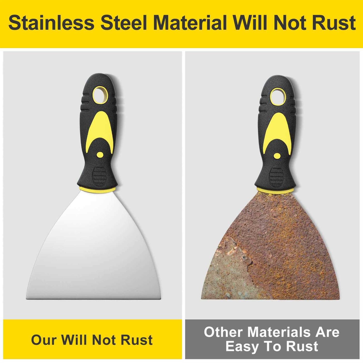 Putty Knives by Rerdeim. Details:About Putty Knife:Putty Knives, Also Commonly Known As ” Putty Knives,” Are Used In Various Construction Industries To Scrape Surfaces Or Lay Materials Such As Plaster, Putty, And Can Also Work To Repair Cracks, Fill Holes, Scrape Paint, to apply spackle to walls, And Remove Wallpaper Are A Must-have Putty Knife Set For Your Home – The Rerdeim Putty Knife Set Is Equipped With Five Different Sizes Of Putty Knives, Suitable For Almost All Jobs. They Are Made Of High-Quality Stainless Steel Stainless Steel Scraper, Strong, Durable And Non-corrosive, Without Losing The 5 In 1 Tool Spackle Knife – The Ergonomic Design Of The Handle Makes It Easy To Hold The Small Putty Knife Firmly, Even For Complicated Jobs – The Putty Knife Is Very Easy To Clean; just Rinse, And Dry With Water, And The Handle Has A Hole For Easy Storage – Specifications :1)Material: High-Quality Stainless Steel.2)Size: 1 Inch Putty Knife, 2inch Putty Knife, 3 Inch Putty Knife, 4 Inch Putty Knife, 5…
