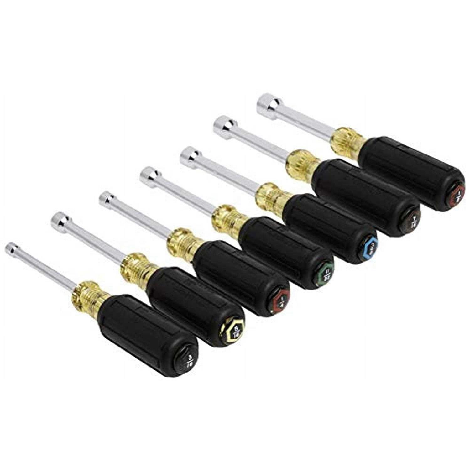 Klein Tools 631 Nutdrivers, 7 Piece Nut Driver Set, Hex Nut Sizes 3/16, 1/4, 5/16, 11/32, 3/8, 7/16 and 1/2-Inch on 3-Inch Full Hollow Shaft