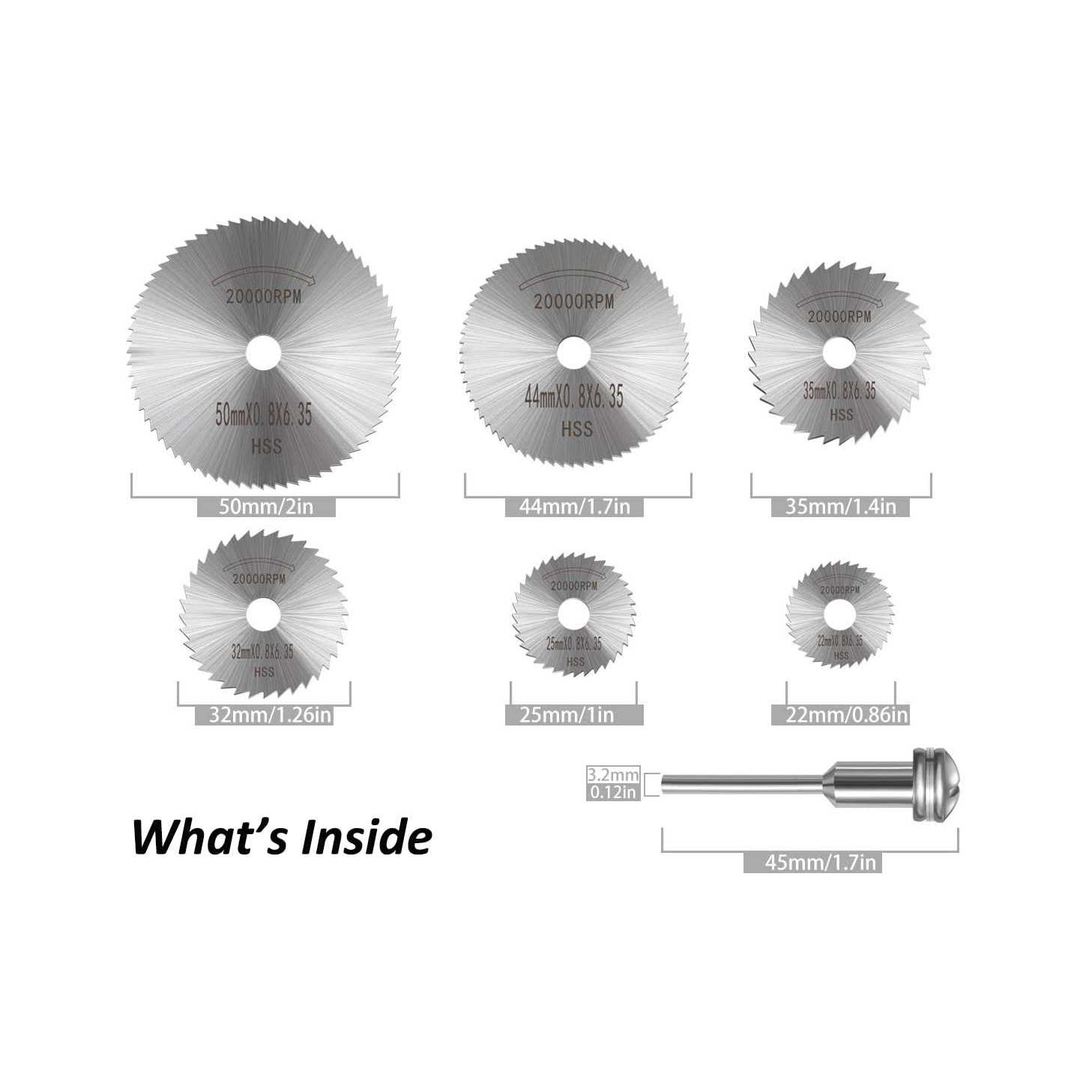 6pc HSS Saw Blades with 1pc 1/8″ Shank Extension Rod, Cutting Wheel Set for Rotary Tools