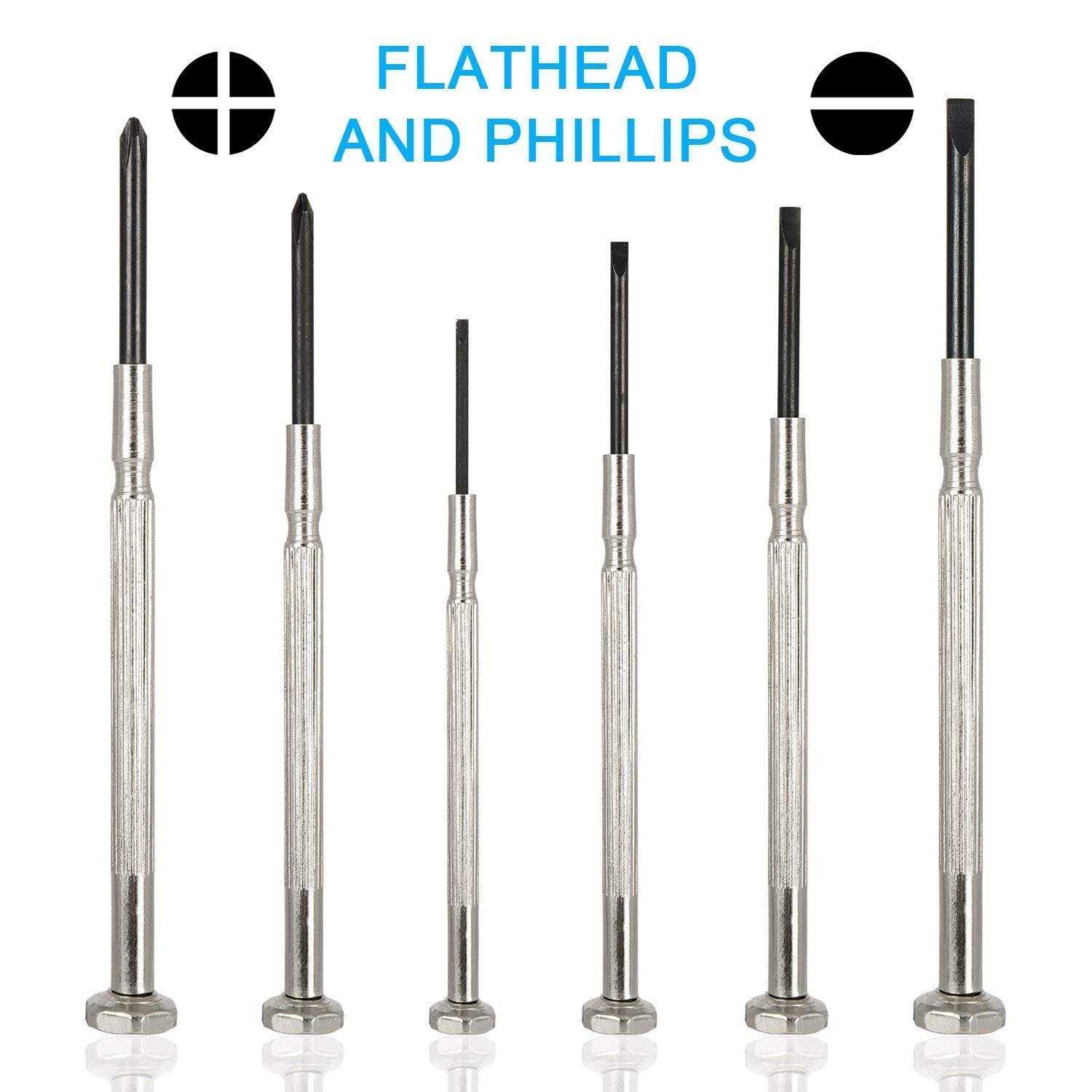 Screwdriver Sets by Garoma. Details:Mini screwdriver set is the prefect choice for your daily repairs such as watch, jewelry, glasses repair and fixing anything with small screws. Our best choice for mini screwdriver repair tools, such as jewelry repair, watch repair, eyeglass repair, children’s toy repair, etc. Specifications: Product Material: Our glasses screwdriver is made of Chrome vanadium steel Package Size: 5.9in * 2.95in * 0.59in Warm Tips: 1. Please keep the Mini Screwdriver Set out of reach of children and pets. 2. Please make sure you have selected the correct small screwdriver set size. Package contains: 1x 0-point Phillips 1x 1-point Phillips 1x 1.4mm flathead 1x 2.0mm flathead 1x 2.4mm flathead 1x 3.
