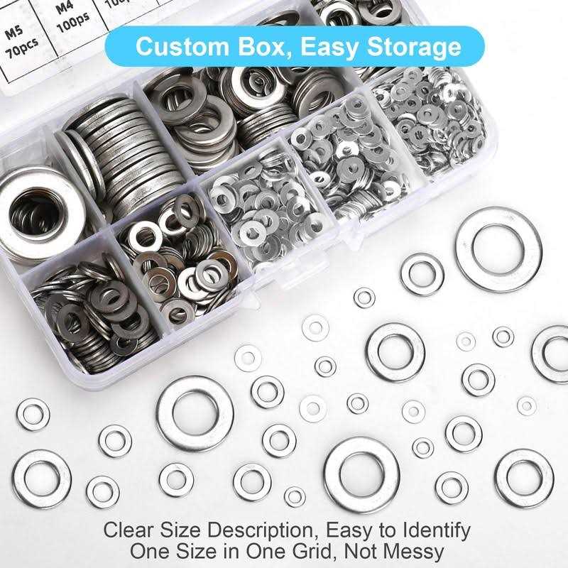 Be the first to review “800 Pcs 304 Stainless Steel Flat Washers for Screws Bolts”
