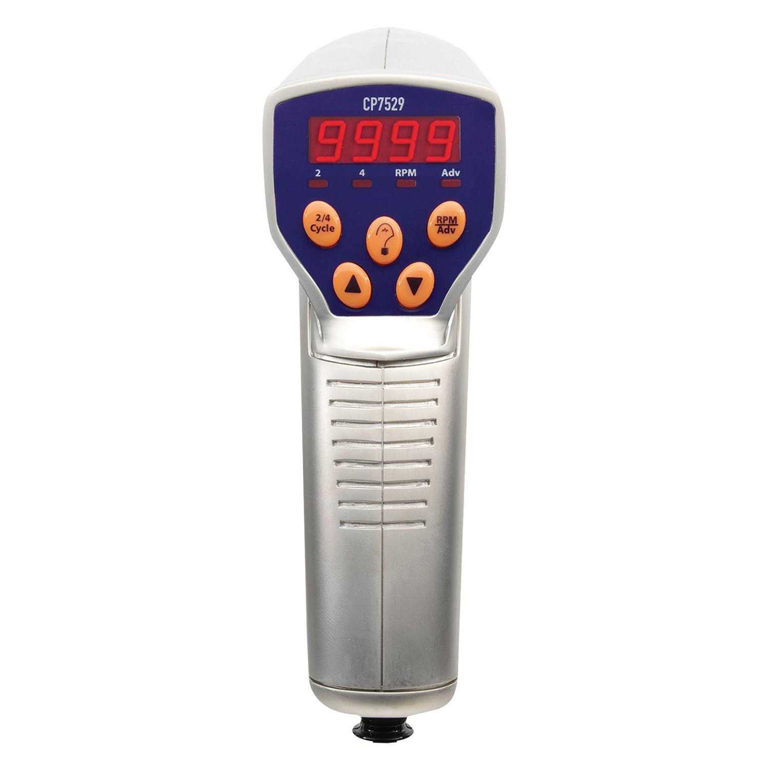 Features unique flashlight with 2/4 cycle and RPM advance lights Molded inductive pickup clamps over spark plug wire to make hook-up easy Digital timing light has a bright LED screen and indicator lights Linear xenon flash tube and focused fresnel lens provides light bright enough for use in broad daylight Actron’s CP7529 Digital Timing Light features microprocessor-controlled circuitry and is loaded with advanced features including a bright LED display, mode indicator lights, and flashlight. The ideal timing light for the heavy do-it-yourselfer or professional technician. Use to measure engine RPM and advance, and set initial timing, check and measure centrifugal advance, and measure vacuum advance. Works on gasoline powered vehicles equipped with conventional, electronic, computer controlled, DIS, or 2-cycle ignition systems. Digital LED tachometer display reads 0-9999 RPM. Advance display indicates to 1/10. Handy 2/4 cycle and RPM/advance mode lights help you keep track of settings and multi-task. RPM/advance selector button and up/down buttons that increase or reduce the advance make operation simple and easy. Features a super bright Xenon flash that makes it easy to see timing marks – even in daylight. The all-metal inductive pickup and durable ABS housing offer rugged reliability while heat resistant over molding on battery clips prevents burned fingers. Works on 6V and 12V vehicles (6V use requires a separate 12V automotive battery for power).