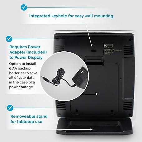 - Illuminated color display with adjustable dimmer; electric-powered with optional battery backup