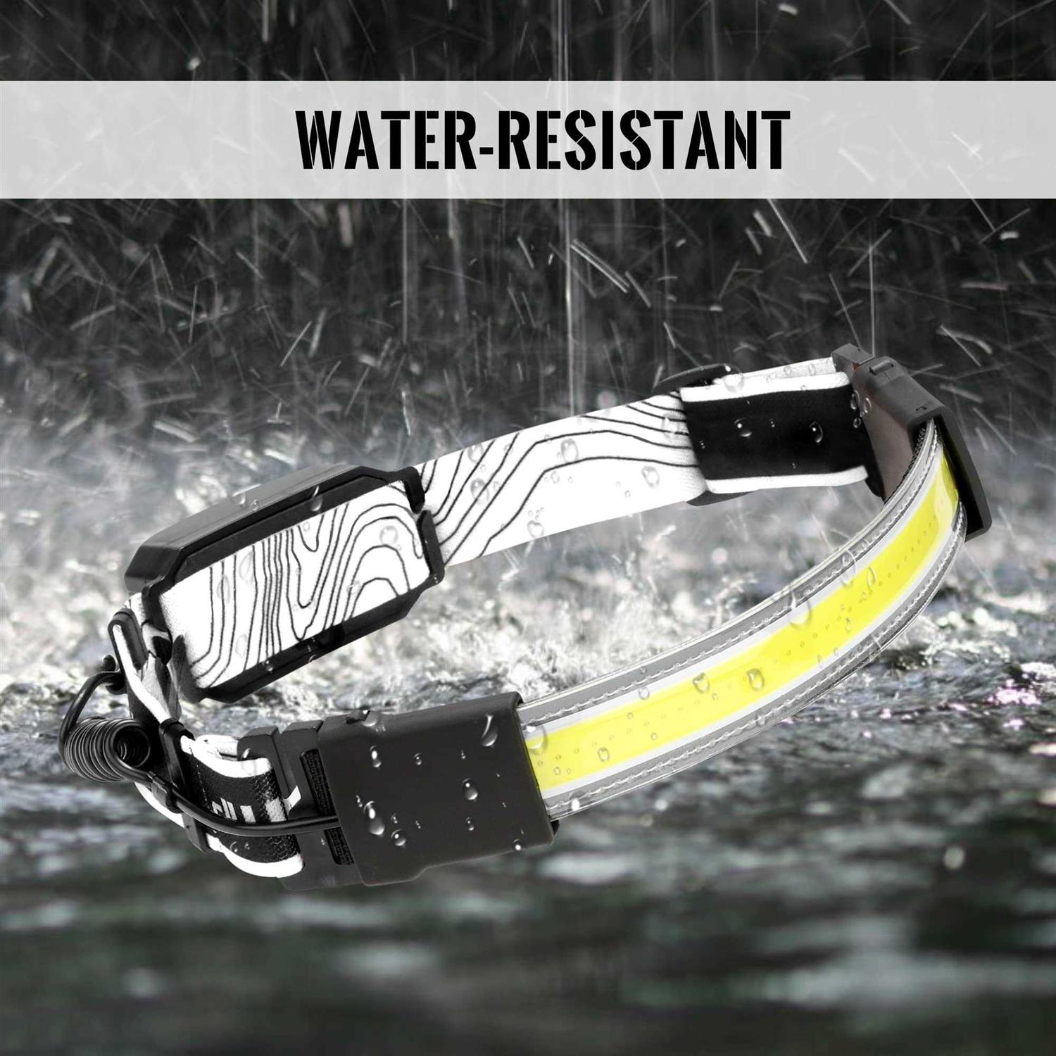 Headlamps by Adelante. Details:Product features:High Brightness: COB lamp beads, provides 230 degrees lighting area.3 Light Modes: COB high mode, COB low mode and COB strobe mode. – Impact-resistant Body: Impact resistant high-grade ABS and silicone material. – Waterproof: Work well in rain, snow. – Rechargeable Battery – Lightweight & Balanced Design: Comfortable headband. – Battery Indicators: Charging: blue light strobe; fully charged: blue light keep on. Wide Applications: Running/ Cycling/ Walking/ Repairing car/ Reading/ Camping, etc.92”x2.76”x.17”Weight: 0.84”x5.51”x4.33”Weight: 0.