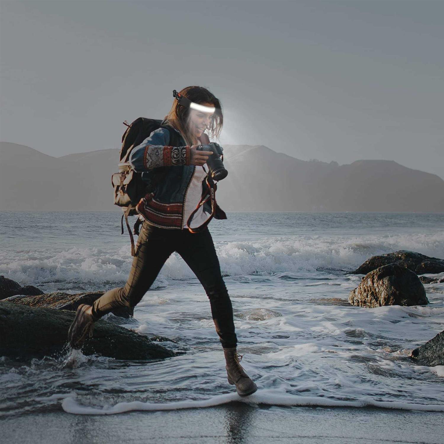 Adelante LED Headlamp Flashlight 1000lm 230wide-Beam USB Rechargeable Head Light with Taillight & 8 Clips