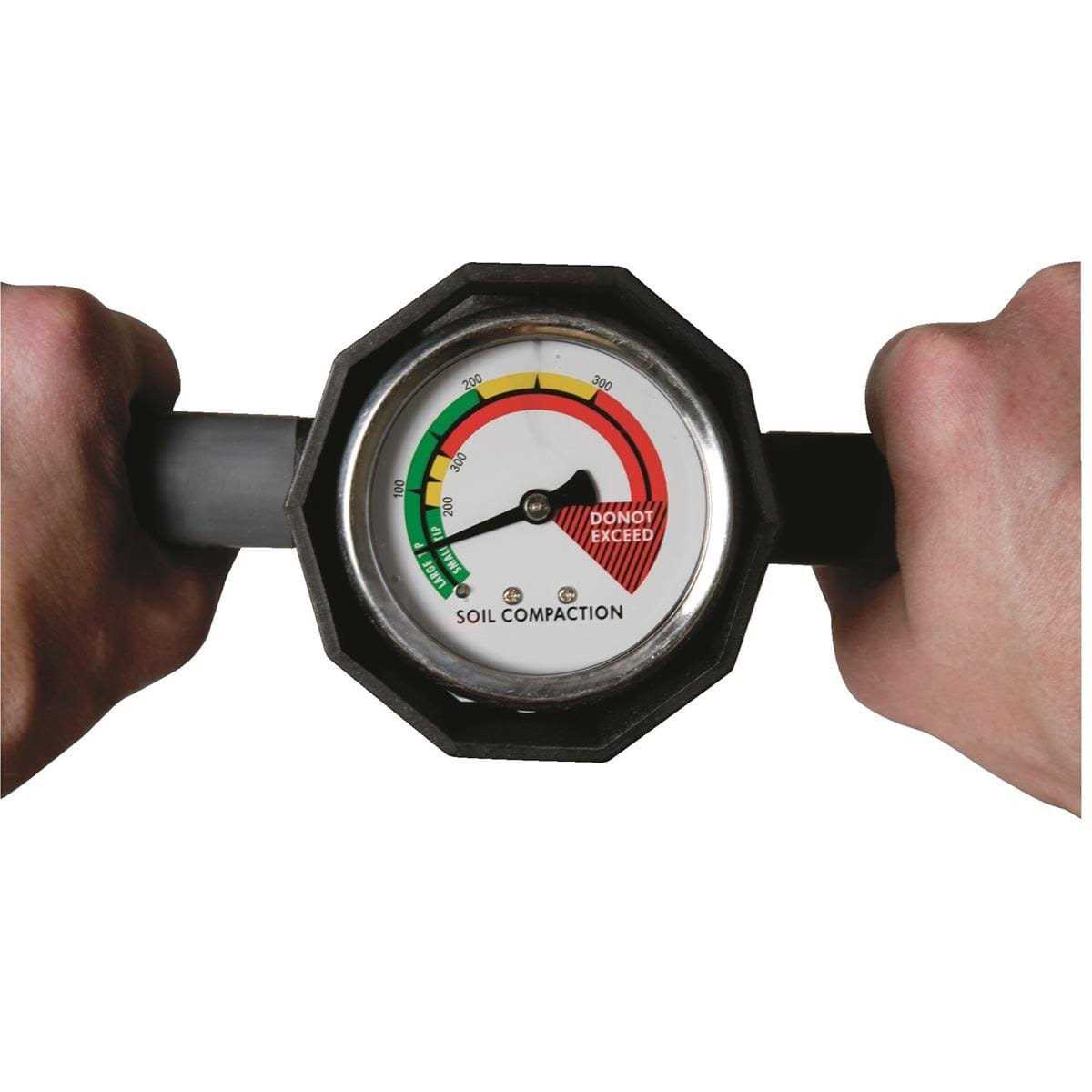 Quickly determine the extent of subsurface soil compaction with this tester. A color-coded, stainless steel dial indicates if growing conditions are good (green), fair (yellow), or poor (red). The dial is liquid-filled to reduce shock. The tester features a durable molded housing, rubber hand grips, and a 24 stainless steel rod with an adjustable shock collar that guards against damage during transport or storage. Two tips are included (1/2 tip for firm soil and 3/4 tip for soft soil) and store conveniently in the tester housing.