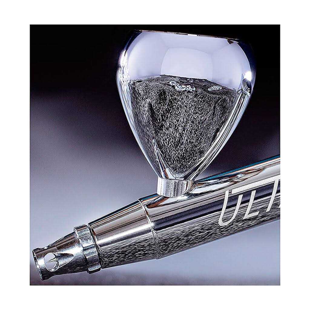 The Harder & Steenbeck Ultra 2024 is a new version of Ultra which has several new features aimed at simplifying the painting process allowing new users to get up to speed quickly. NEW Needle cap offering a clear view of the needle tip & allowing easier cleaning NEW Trigger engineered to prevent incorrect operation – it will only move back for paint after being pushed down for air NEW Collar that controls trigger travel with pre-sets for primer, basecoat & highlights (3) NEW 0.45mm Head set offering improved detail capability over the existing 0.4mm set while being more user friendly The Ultra is a double action, internal mix, gravity fed airbrush, featuring H&S’s self centering “drop in” nickel silver nozzle which can be removed without tools for simple cleaning & maintenance. The Ultra has a stainless steel needle & solvent resistant PTFE needle seal & is supplied in a protective presentation case with spray test card. * Double Action, Gravity Fed * 0.45mm Nozzle * 5ml Paint Cup * Connects to standard quick connect or standard 1/8″ BSP-P Hoses.