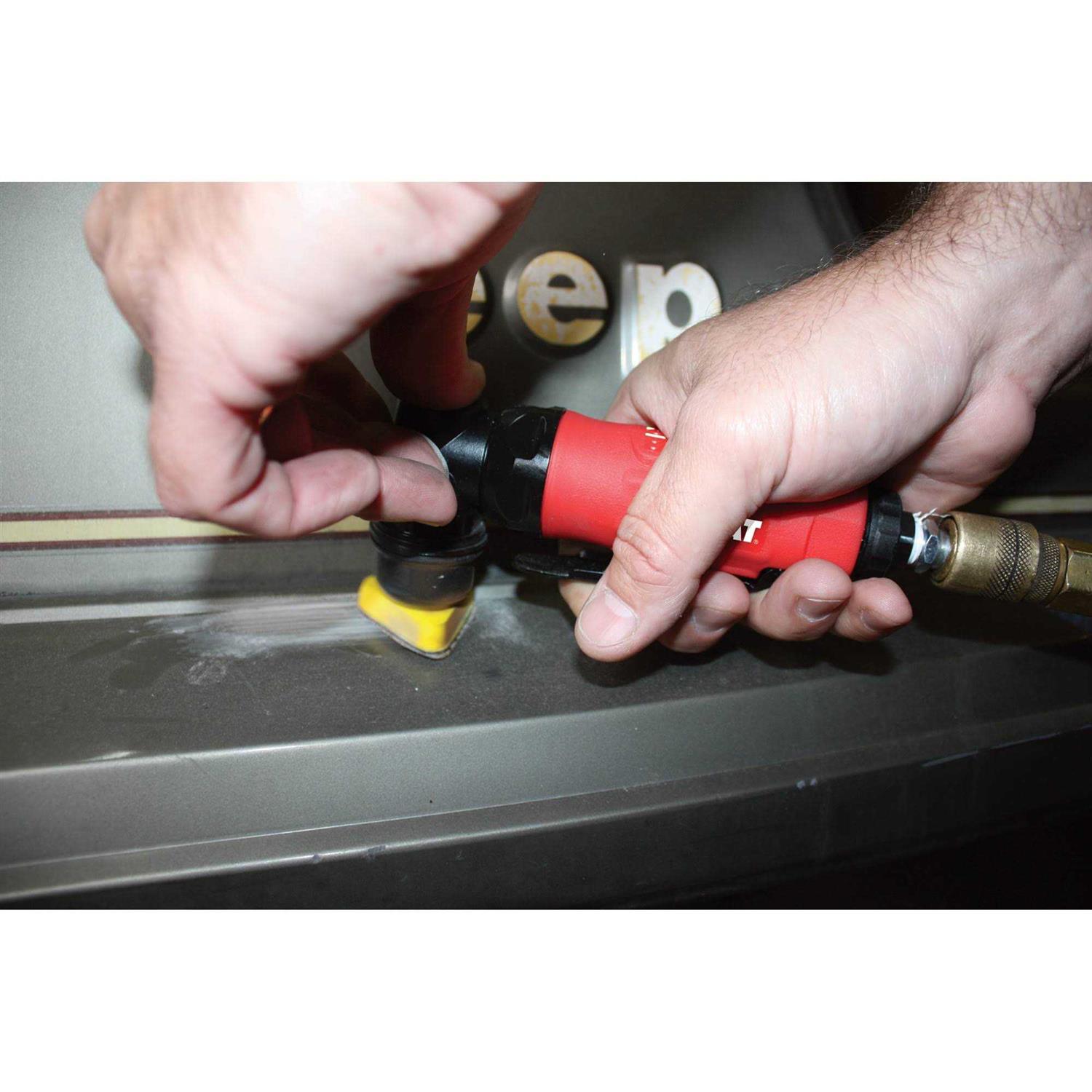 The Aircat AIRCAT Orbital Air Sander/Polisher features a 1/8in. orbital head for ultra-fine sanding and polishing. The combined spindle-counter balance reduces vibration levels to 1.8m/sec. and adds reliability. Precision alloy steel spiral-bevel gears extend tool life. The internal silencing system reduces noise levels to 78dB and the composite grip adds operator comfort. The 6320 spot sander is ideal for professional auto techs. The compact design and multiple attachments make this tool ideal for quick spot repair, polishing and refinishing. Operates at 13,000 RPM 1/8in. orbit for ultra-fine sanding and polishing Spindle-counter balance reduces vibration Alloy steel spiral-bevel gears extend tool life Internal silencing reduces tool noise to 78dB Weighs only 1.1 lbs. and is just 6.1in. long for finish work and spot sanding/polishing 2.5 CFM average air consumption 1/4in. air inlet 3/8in. minimum hose size Includes Velcro 1.25in. and 2in. round backing pads and 1.5in. triangular backing pad Age Group: adult.