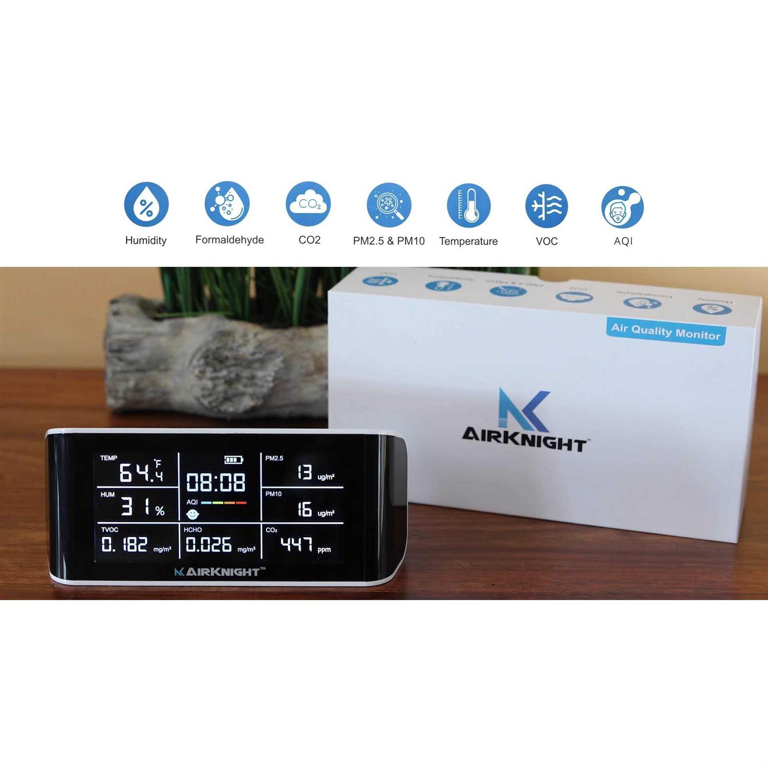 - [PROTECTS EVERY BREATH] When it comes to the health of your family, AirKnight knows that every breath counts. Our 9-in-1 air quality monitor is equi.