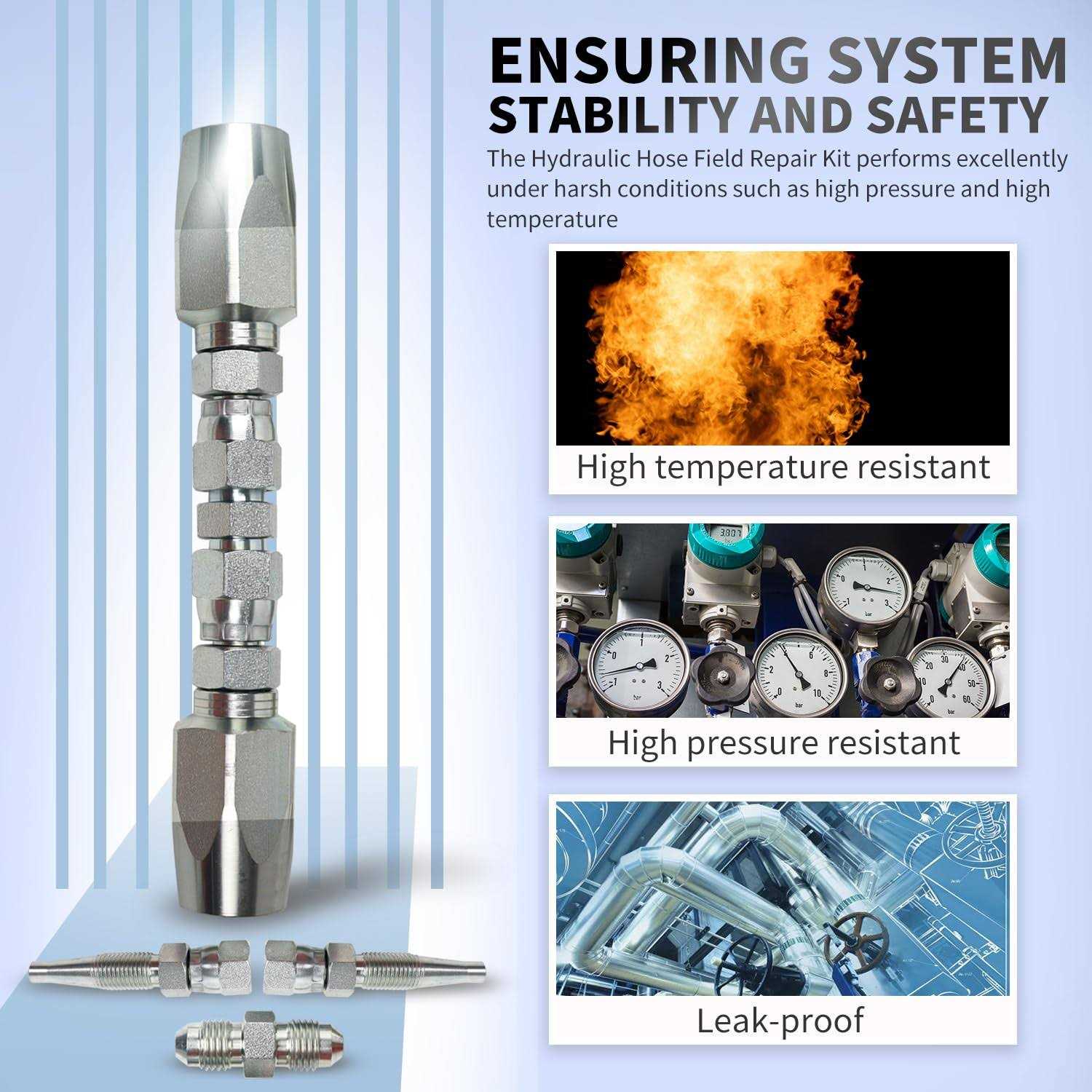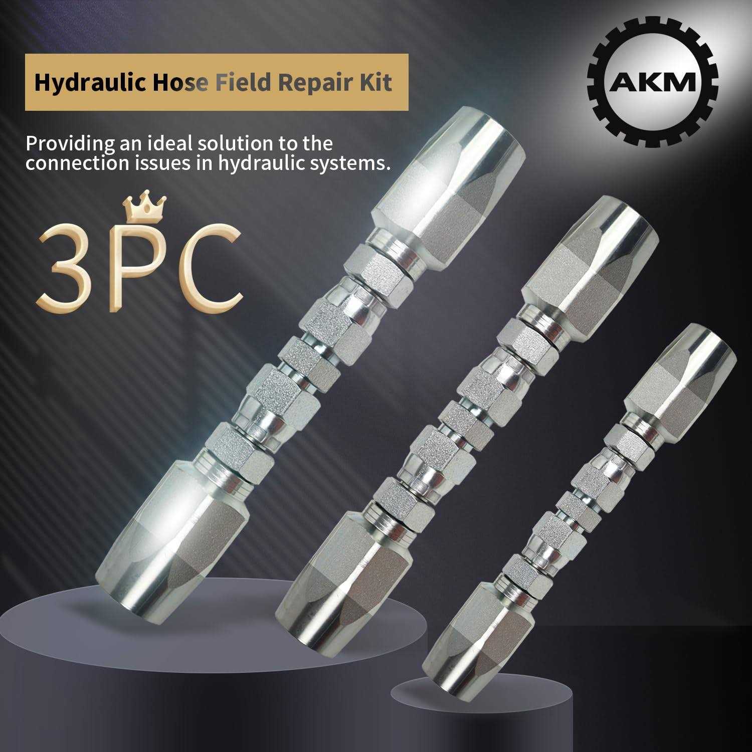 Akm 3pcs Hydraulic Hose Field Repair Kit,1/4″, 3/8″, 1/2″ Inner Diameter Reusable