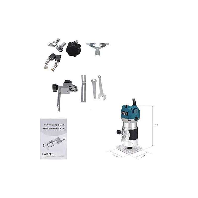 Routers by AKYPACH. Details:This electric trimmer is widely used in wood processing, cabinet processing, handicraft production and DIY. Easy to wood trimming, grooving. Transparent base design is great for accuracy easily recognizable in processing. The scale is clearly visible, easy to operate. With this electric trimmer, make it smooth in the woodworking.Trimming guide, roller running along the curve, ensuring cutting is exact, curve processing is fine.The scale is clearly visible, easy to operate knob, the scale can be adjusted. Specifications: Material: Aluminum + Plastic Color: blue + silver Power: 800W Voltage: 110V (US Plug) Motor speed: 30000R/MIN Trim diameter: 6.35mm Motor material: copper wire motor Frequency:50/60Hz Size: 20 x 9 x 8.5cm/7.87 x 3.54 x 3.35inch Carton packaging size: 23.5*13*11cm/9.25 x 5.12 x 4.33inch Weight:1759g What’s in the Box: 1 x Electric Trimmer Wood Tool 1 x Straight Guide 1 x Guide plate 1 x Trimming Guide 2 x Wrenches 2 x Carbon brush 1 x…