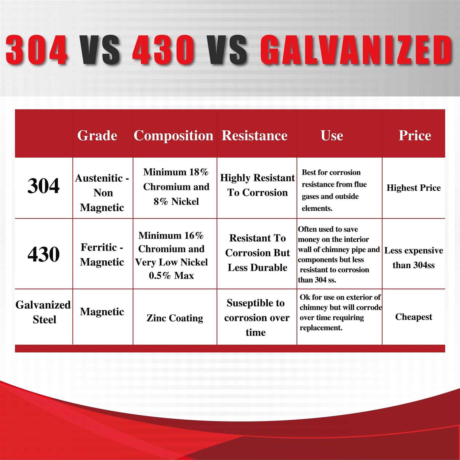- 304 Stainless Steel construction provides superior corrosion resistance over our competitors galvanized steel or 430 stainless steel construction.