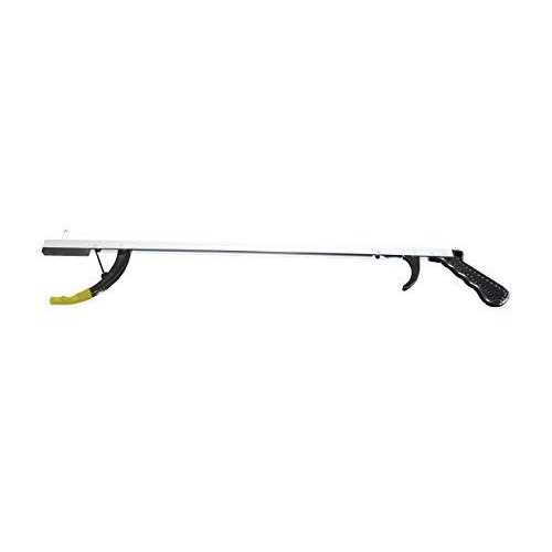 Eliminates excessive bending and reaching by extending your reach a full 26″ inches. Rubberized jaws perfectly grasp and hold small objects of various materials, shapes, and sizes in hard-to-reach places such as on the floor, behind furniture, under beds, on high shelves, and more. Contains a magnetic end to pick up metal items like screws, paperclips, and more. Eliminates moving or crawling underneath furniture to retrieve items. Made with a premium, lightweight and heavy duty aluminum frame. Extra wide 3 inch jaw opening includes durable tips for a secure grip. Comfortable, slip resistant ergonomic contoured handle is very easy to pull closed, which is ideal for individuals with low hand strength, arthritis, or dexterity concerns. Rust-proof design makes for one to use indoors, outdoors, and is great for a wide range of applications. Whether you are gardening, picking up fallen leaves, or cleaning staples off your floor, this Reacher is great for any task. Absolutely no assembly required and will hold up to 10 plus pounds making it very durable.