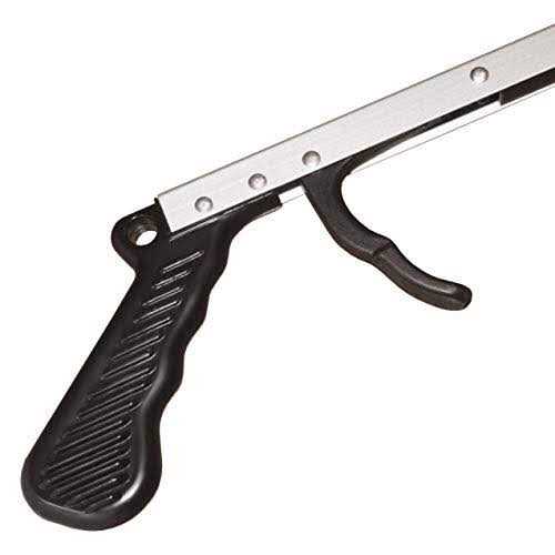 Rehabilitation Advantage Aluminum Reacher Grabber extends your reach a full 32 inch inches and is very versatile. This Reacher is easy to use and store. The overall dimensions are 32 inch” long x 1 inch” wide x 1 inch” high. This Reacher contains a magnetic end to pick up metal items such as screws, paperclips, and more. The unique rubberized jaws perfectly grasp and hold small objects of various materials, shapes, and sizes. This Reacher effortlessly grabs objects in hard-to-reach places such as on the floor, behind furniture, under beds, on high shelves, and much more. It eliminates moving or crawling underneath the furniture to retrieve items. It is made with a premium, lightweight, and heavy-duty aluminum frame.