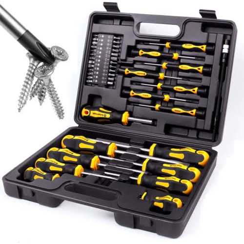Amartisan 22 IN 1 Ratchet Screwdriver Set, Precision Multi-bit Ratchet Screw Drivers, Slotted/Philips/Pozi/Torx Product Features [High-Quality]: Multi-bits Ratcheting screwdriver has an ergonomic handle offering twisting force for three different applications, which enables clockwise,counter-clockwise ratcheting and locked positions. [Precision Screwdrivers Bit]: Slotted Bit: SL1.5, SL2.5. Phillips Bit: PH000 PH00. Torx Bit: T4, T5, T6, T7. [1/4 Screwdrivers Bit]: Phillips Bit:PH1,PH2,PH3. Slotted Bit: S4, S5, S6. Torx: T10, T15, T20. Pozidriv Bit:PZ1,PZ2,PZ3. [Clever Design]: The drill bit is easy to store in the handle and easy to carry, so you don’t have to worry about losing the drill bit.