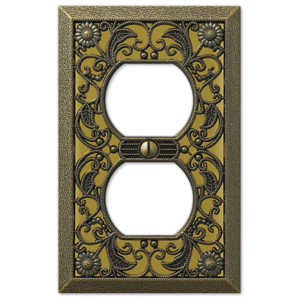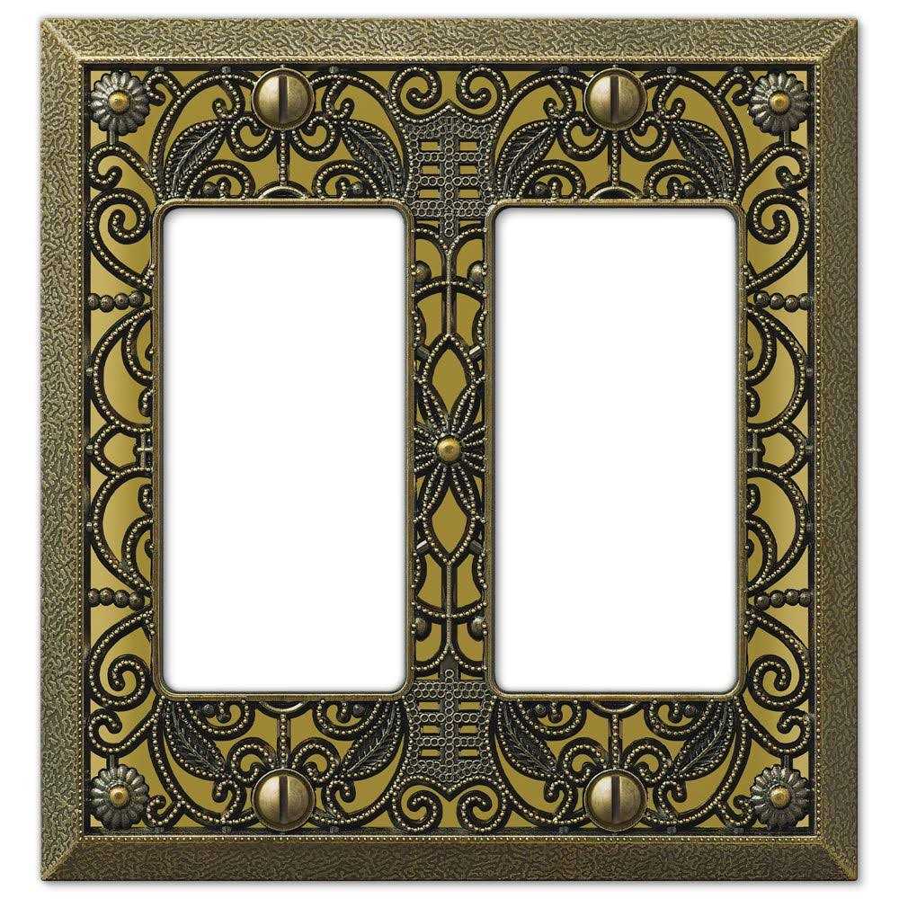 Amerelle 65TAB Filigree Cast Metal Toggle Wallplate Antique Brass