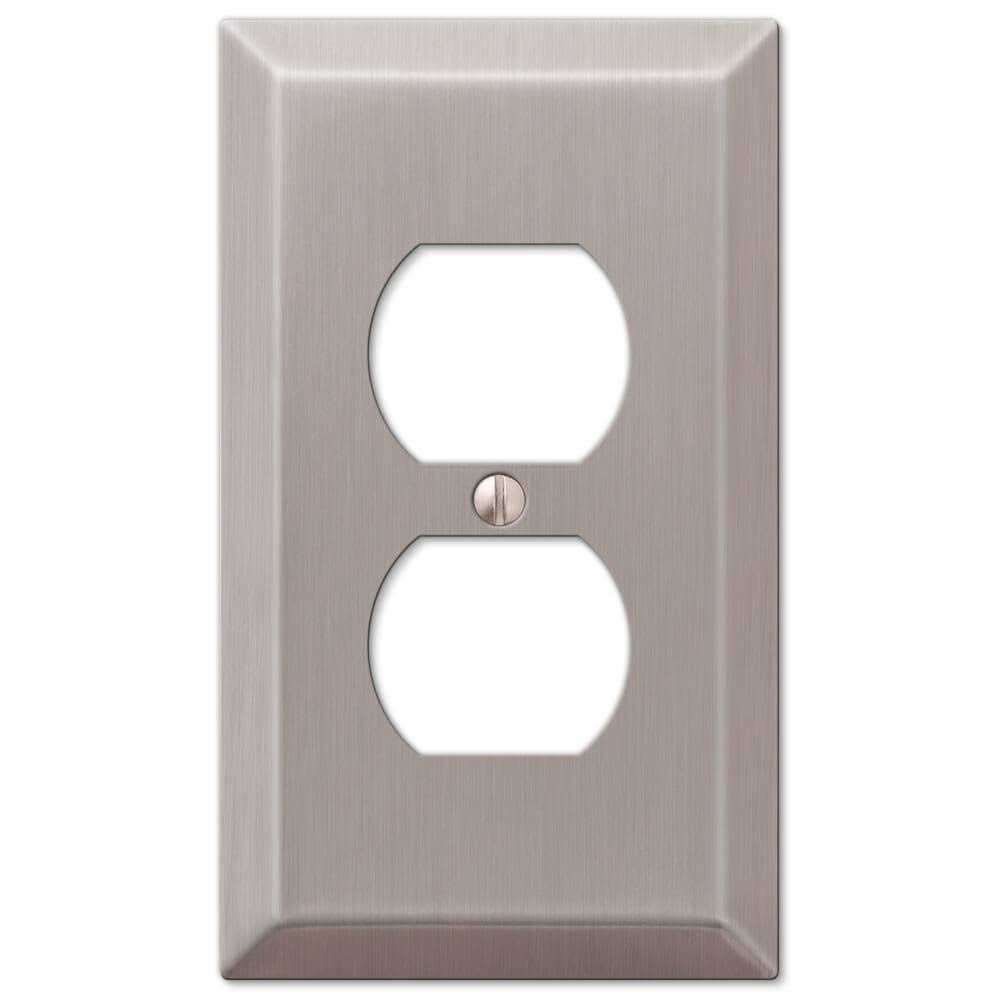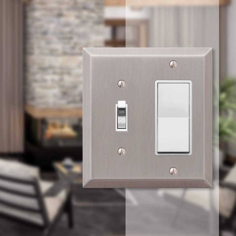 Amerelle Stamped Steel 2-Gang Single Toggle/Rocker Wall Plate, Brushed Nickel is a stylish and durable wall plate designed to enhance the appearance of your electrical outlets. The wall plate is made of stamped steel, which gives it a sturdy construction and ensures its durability over time. The brushed nickel finish adds an elegant and sophisticated touch to your decor, making it an ideal accent piece for any room. With its 2-gang design, this wall plate is specifically designed to fit standard outlets. It seamlessly covers the electrical outlet, providing a clean and finished look to your walls.