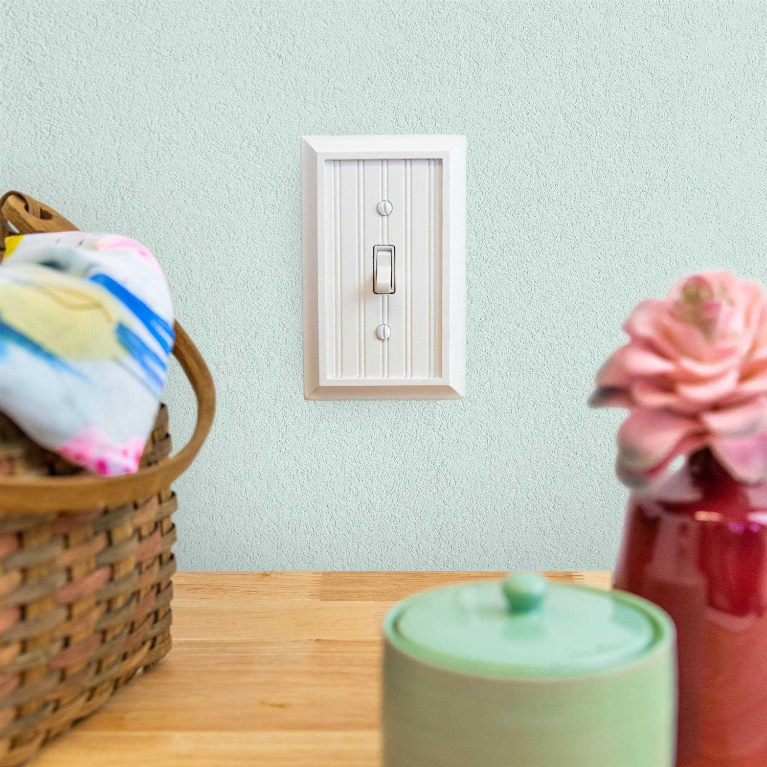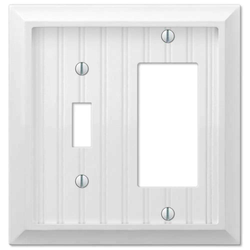 Manufactured by Amerelle, the leader in decorative wall plates and hardware. Made from high quality, beautiful Composite, this stylish wall plate does more than just cover electrical boxes, adding a simple elegance to your decor. Decorating with wall plates is an easy and inexpensive way to make an immediate impact in your home. They provide a charming upgrade to your standard plastic ones by adding a refined, decorative accent to any room in your house. High quality, beautiful Composite construction Quickly and inexpensively adds a stylish touch to your room Stylishly covers a 2 Gang 1-Toggle and 1-Rocker electrical box 2 Gang 1-Toggle and 1-Rocker wallplate cover Constructed of high quality, beautiful Composite Easy to install with only a screwdriver Matching screws included for fast installation White finish provides stylish decor for your home Resists cracking, chipping, peeling and fading Additional configurations available so all your wall plates will match Identical to Hampton Bay Cottage/Cottage wall plate family Get an incredible look to your living space by selecting this AMERELLE Cottage and Composite Wall Plate White high impact plastic.