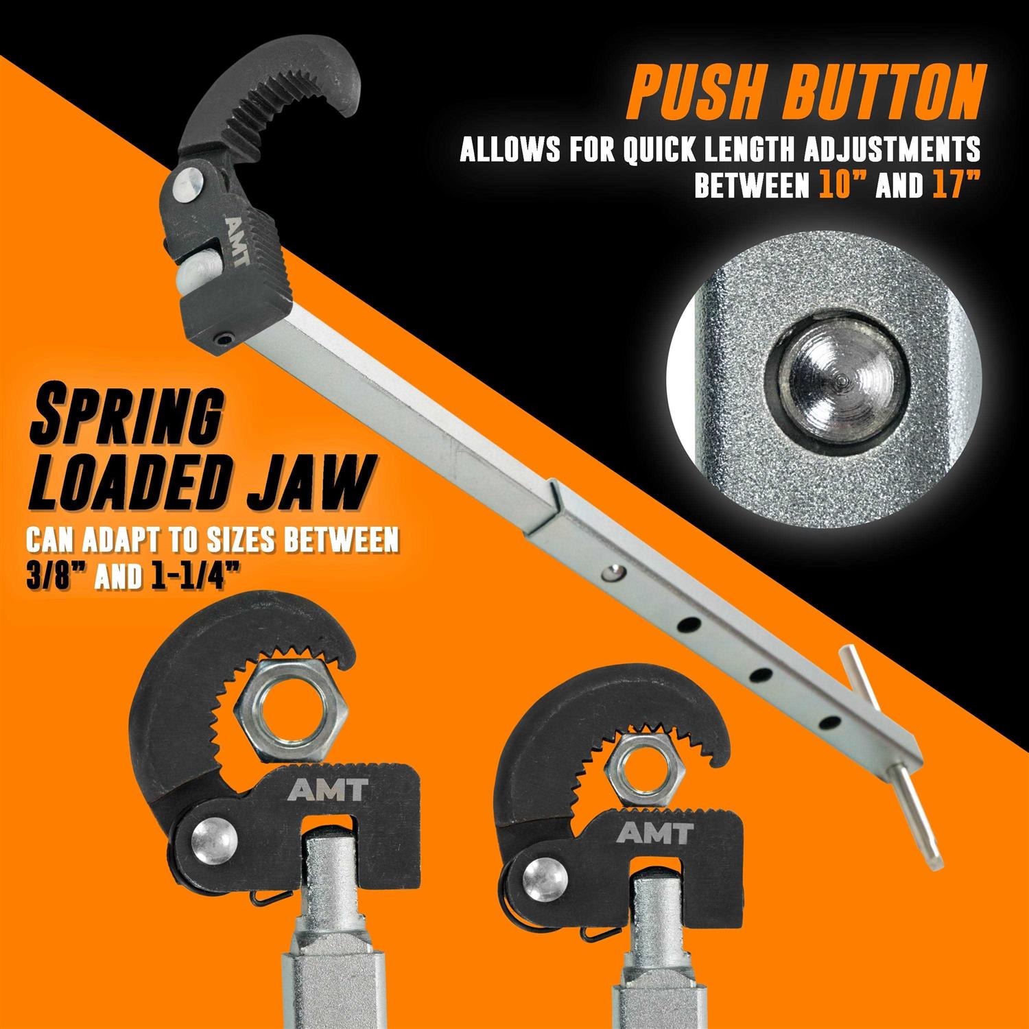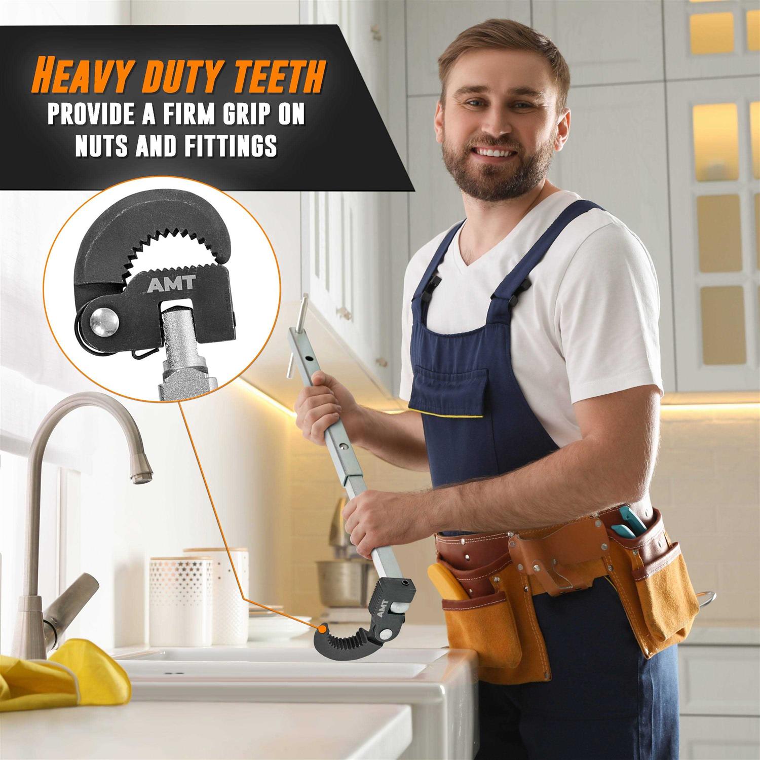 American Mutt Tools Telescoping Basin Wrench Tool – 3/8 to 1-1/4” Jaw Capacity