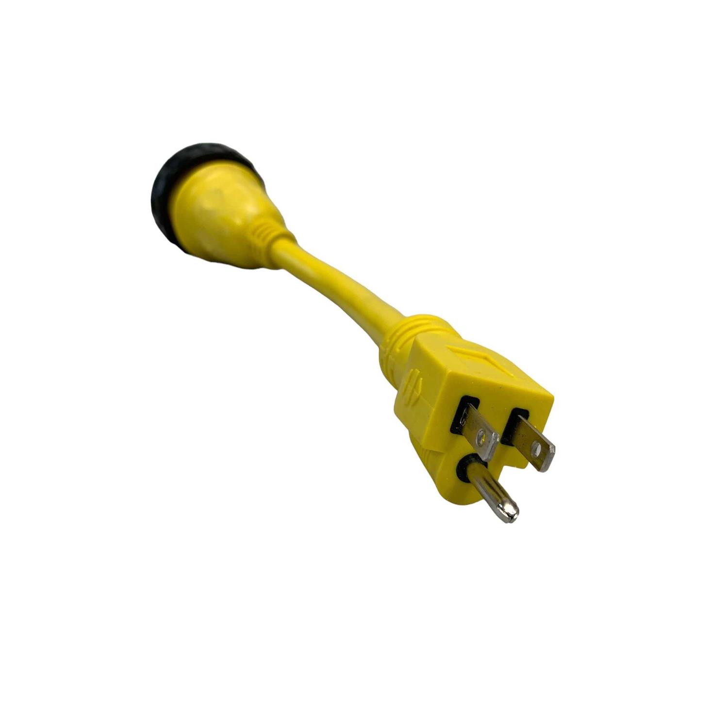 - Adapts a 15 amp household outlet so you can plug in your 30a twistlock boat or RV