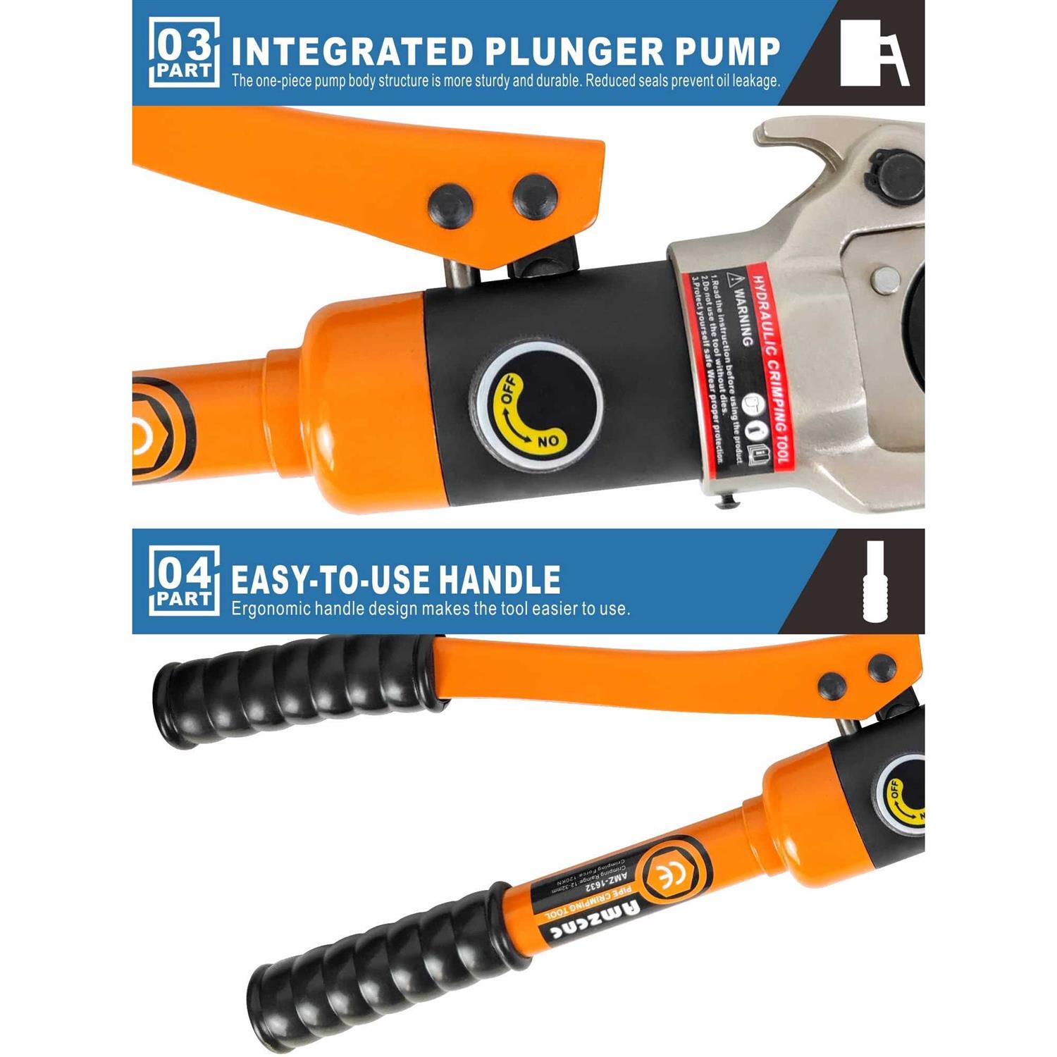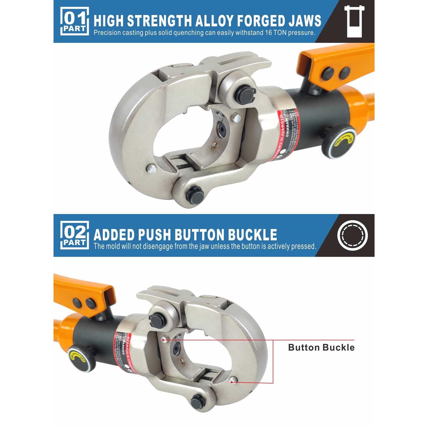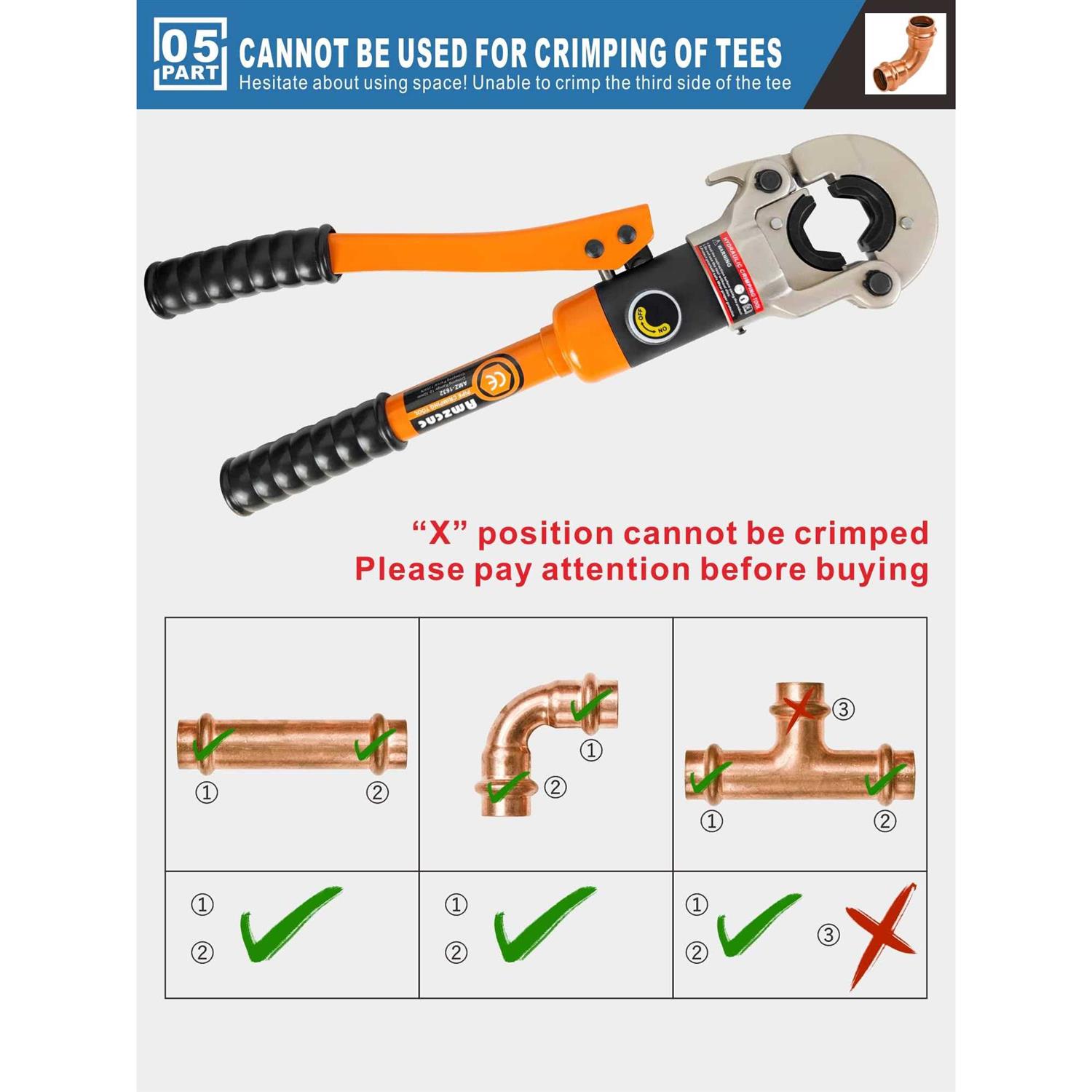 Crimpers by AMZCNC. Details:【Hydraulic Power Driven System 】Different with similar hand tool that relies on leverage and hand power, our hydraulic copper tube fittings crimping tool is designed with hydraulic cylinder which is labor-saving. One person is totally enough to finish leak-free connections. 【Changeable Crimping Jaws 1/2″, 3/4″, 1″】 With a ball bearing springs inside the head, just simply slide in and out to change the crimping dies of different size to meet your various demand and make it the fastest solution for pipe maintenance and repair. 【360° Rotating Head】The rotating head makes the copper plumbing easier in some locations especially for Tee fittings. Note : When connecting Tee fittings, the middle connection should be done first or second. 【Reliable and Faster than Soldering 】No brazing, no soldering. It takes only a few pumps to get the fitting compressed in seconds. Anti-slide and ergonomic grip makes the crimper comfortable when sealing pipe fittings. 【Wide…
