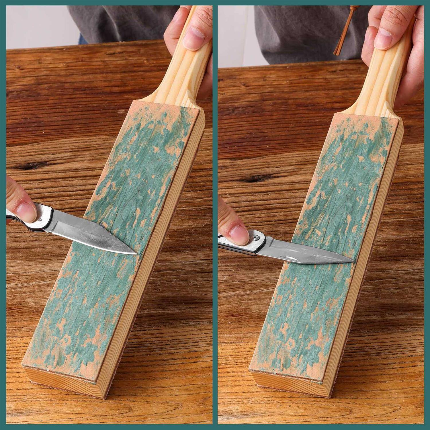 Angerstone Double Side Leather Strop for Knife Sharpening 14x 2 Stropping Block Kit with Polishing Compound