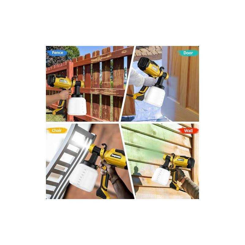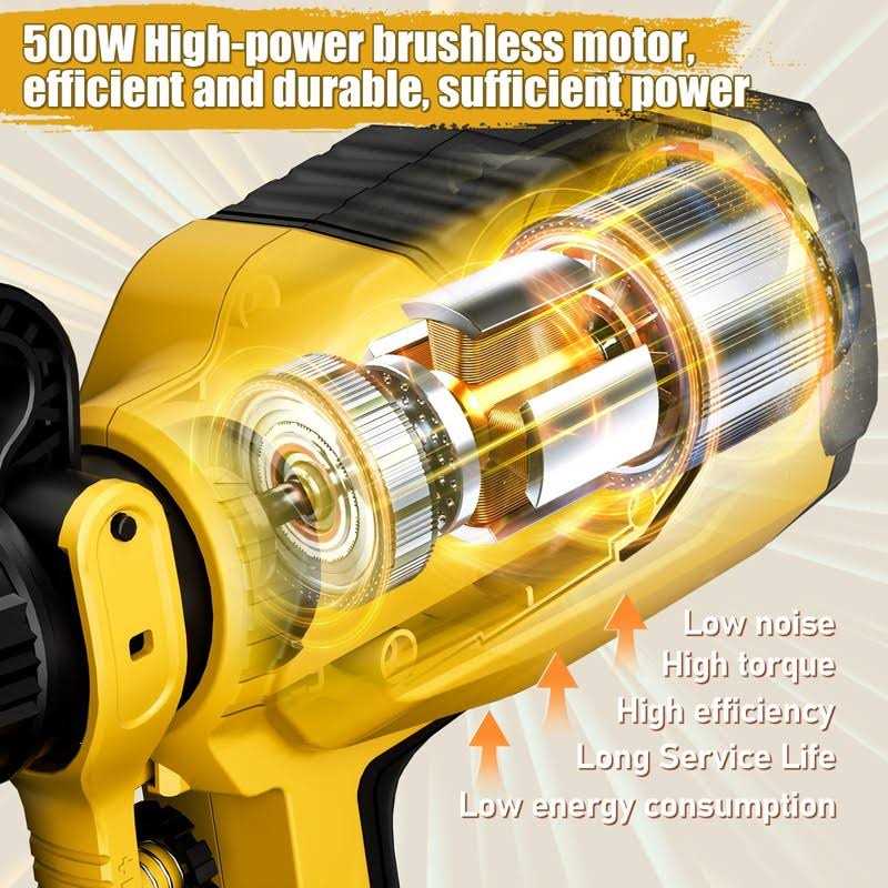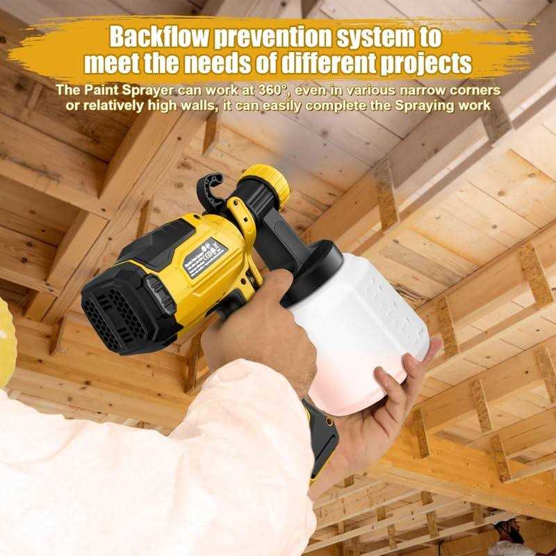 【3 Spraying Modes/4 Nozzle Sizes】The paint sprayer can switch different spraying modes, such as vertical spraying, horizontal spraying and circular spraying, suitable for different painting needs. At the same time, it is equipped with 4 types of nozzles of 1.0 1.5 2.0 and 3.0mm. Nozzles of different sizes are suitable for coatings with different viscosities and different spraying tasks. Smaller nozzles are suitable for delicate spraying, while larger nozzles are suitable for spraying large areas 【Advanced Technology & Design】 The high-power motor provides powerful force, enabling the Paint gun to spray at high speed. This saves time and energy, improving work efficiency. With a maximum viscosity increase to 120 Din-s, it can handle a wider range of coatings, including thicker or specialty coatings. It is also less prone to nozzle clogging, resulting in better paint application results. 【Adjustable Flow Control】The Electric Paint Sprayer has a maximum flow rate of 900ml per minute, and it can be adjusted using the knob to control the spraying speed and the coverage of the paint. This feature helps save paint, adapts to different work requirements, and prevents clogging issues. It also allows for adjusting the spraying speed and thickness to meet different construction needs. 【EASY TO USE/CLEAN FEATURES】The Paint Sprayer is easy to assemble without tools, even if you are a beginner, you can easily get started after reading the instruction manual. The spray gun adopts a detachable design, which can separate the front and rear ends, connect the cleaning joint to the faucet, and clean the residual paint in the front pipe. It has a cleaning brush and needle, which can clean the residual paint on the nozzle part, allows you to easily complete the cleaning work. 【Wide Application】The paint Spray gun is only 2.93 lbs, lightweight enough for one-handed use. The ergonomic handle reduces hand fatigue, and you won’t feel tired after long-term use. Suitable for Paint Sprayers for Home Interior and Exterior, House painting, Walls, Fence, Wood, Furniture, Cabinets, Decks, DIY work, etc. 【Package Included】1 X Paint Sprayer, 1 X 1400ml Container, 4 X Copper Nozzle, 1 X Cleaning Needle, 1 X Cleaning Brush, 1 X Viscosity Cup, 1 X User Manual, 1 X Blowing interface, 1 X Cleaning interface. 500W high power motor< br > 4 copper nozzles< br > 3 spray modes< br > 1400ML container< br > Spray evenly< br > Not easy to clog the nozzle< br > easy to clean< br > widely used< br > Unique blow & clean function, soot blowing joint< br > easy to use< br > Maximum flow: 900ml/min< br > Maximum viscosity: 120DIN-s< br > Power cord: 2m< br > Voltage: 120V, 60Hz< br > Four nozzles (1.0mm 1.5mm 2.0mm 3.0mm)< br > The maximum spray distance is 15CM< br >