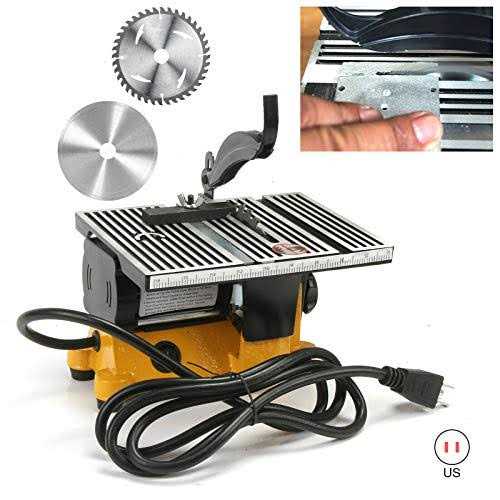 This Mini Table Saw is a mini benchtop mounted cut-off saw with high-speed steel blade for cutting metal, wood, plastic and other light materials. This Benchtop Cut Off Miter Saw has adjustable miter gauge, perfect for all your DIY projects. This precision bench saw makes perfect cuts in soft metals, wood and plastic in 1/10th the time it takes by hand. Compact size and portable; easy to use for cutting metal, aluminum, copper, Plastic and wood. This bench-top saw is so accurate that you might never have to file or sand ends. This Mini Table Saw is a mini benchtop mounted cut-off saw with high-speed steel blade for cutting metal, wood, plastic and other light materials. This Benchtop Cut Off Miter Saw has adjustable miter gauge, perfect for all your DIY projects. This precision bench saw makes perfect cuts in soft metals, wood and plastic in 1/10th the time it takes by hand. Compact size and portable; easy to use for cutting metal, aluminum, copper, Plastic and wood. This bench-top saw is so accurate that you might never have to file or sand ends.