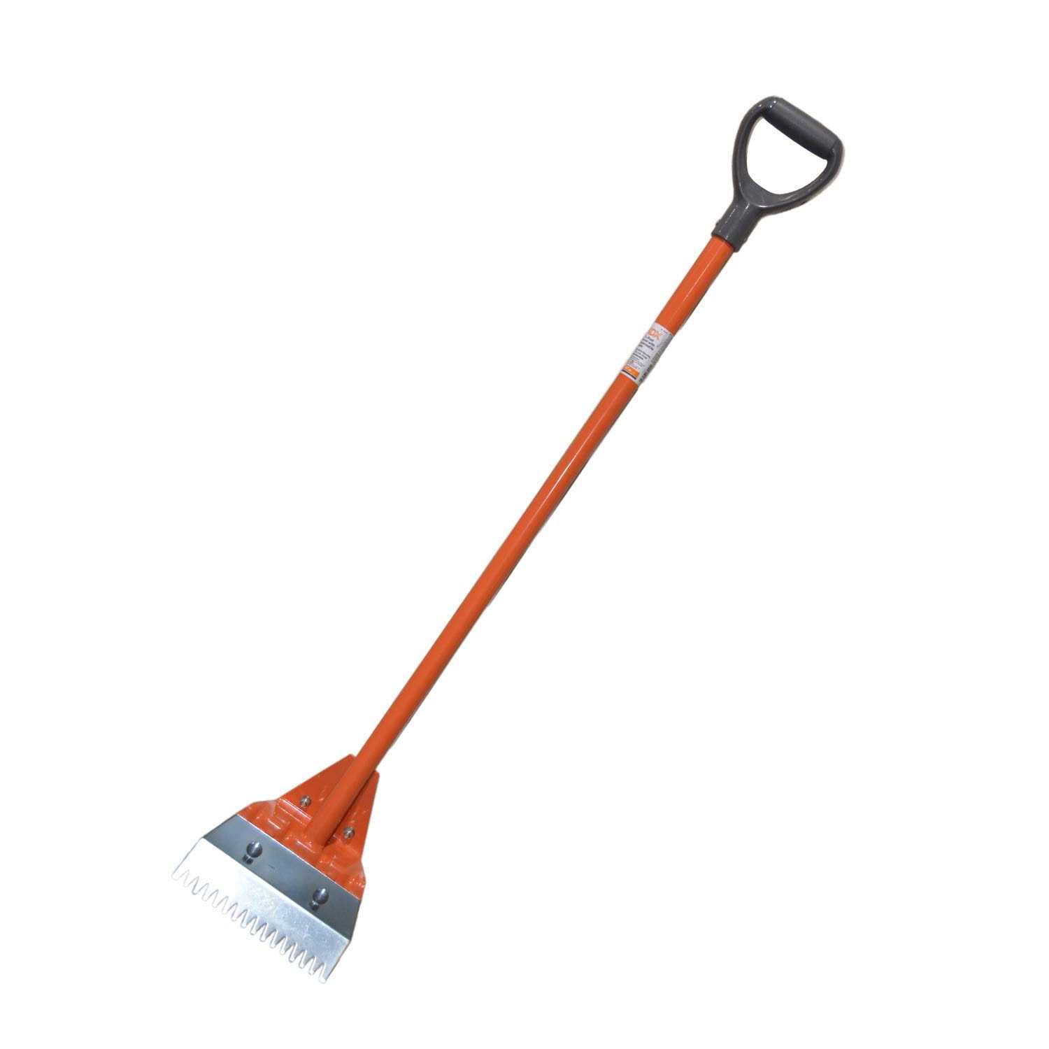 This roof shovel is designed to help remove composition roof shingles. It has a 47.5 in. straight handle, and strong, durable heat treated steel teeth. This tool helps you take on the toughest roofing jobs with ease. Heat treated, galvanized steel teeth are strong and durable Remove composition roof shingles and nails at the same time Teeth are heat-treated for durability Roof shovel is 47.5 in. L, with a straight handle Heat treated steel teeth are strong and durable D handle design for comfortable, 2 handed control Bright orange color is highly visible HDX, 47.5 in. Roof Shovel, THD-47.5 This wonderful HDX Shingle Stripper helps you take on the toughest roofing jobs with ease. Has straight handle, and strong, durable heat treated steel teeth.
