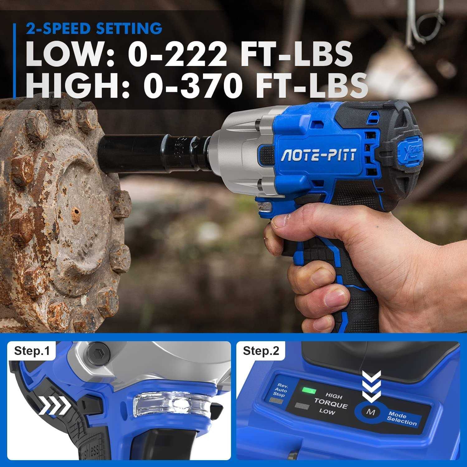 AOTE-PITT 20V 370 Ft-lbs Brushless Impact Wrench Kit 1/2 Inch Cordless Electric Impact Gun