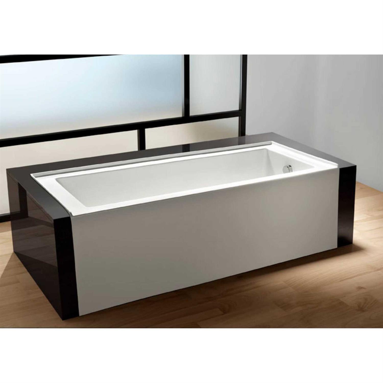 The Kingston Brass Aqua Eden 60-Inch Acrylic Alcove Tub was designed to add beautiful form and function to your bathroom. Complementing a variety of modern and transitional decor schemes, the tub features an attractive apron front, a left hand drain, and a strong acrylic construction built for long-lasting durability. With a 60 gallon tub capacity and plenty of leg room, this drop in alcove tub is the perfect piece to complete any modern bathroom ensemble.