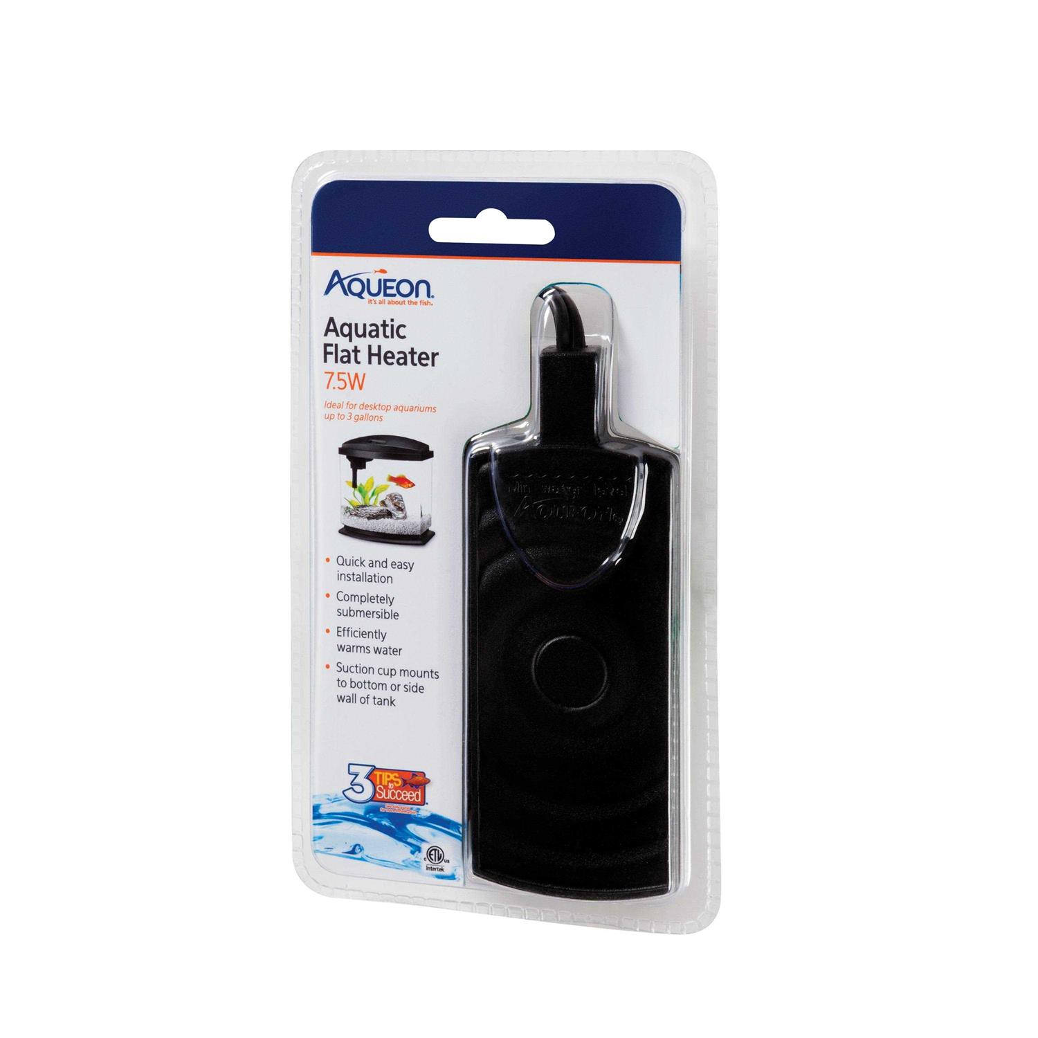 Aquatic 7.5 Watt Flat Heaters provide warmth for small tropical fish and are designed for glass or acrylic desktop aquariums 1 gallon to 3 gallons. They are completely submersible, easy to install and efficiently warm aquarium water. Suctions cups are included so you can mount the heater to the bottom or side wall of the aquarium. Be sure to choose the appropriate size for your aquarium. Do not operate or leave product plugged in when it is outside of water.