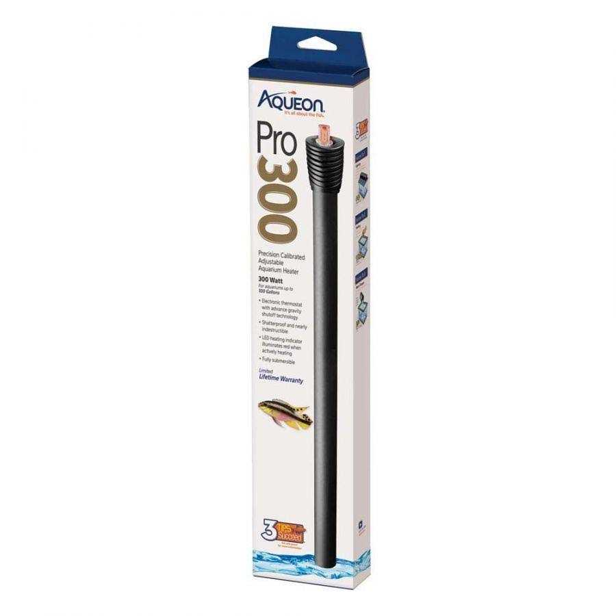 Aqueon Pro aquarium heaters are built with a durable, non-corrosive shell for strength and even heat distribution. Each unit is equipped with electronic thermostats for accurate temperature settings and advanced gravity shutoff feature safety. The temperature settings are adjustable, LED power indicator illuminates Red when the unit is actively heating. This 300W Pro heater is for use in aquariums up to 100G and can be used for freshwater or saltwater aquarium; and can be positioned horizontally or vertically. Other wattage heaters are also available, 50W, 150W, 200W and 300W.