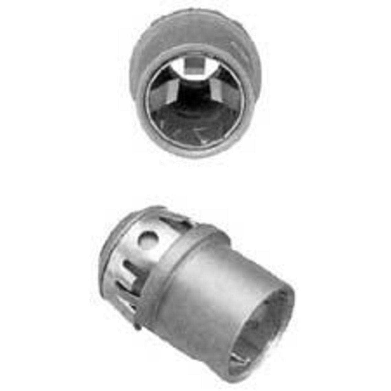This Snap2It duplex connector features die-cast zinc construction and polypropylene insulation. It also offers toolless installation with a snap-on design for a tight hold. Use with steel and aluminum jacketed cables. E 18304, CSA File No. LR49636 RoHS Compliance, Cable Opening Min. 0.485 In.