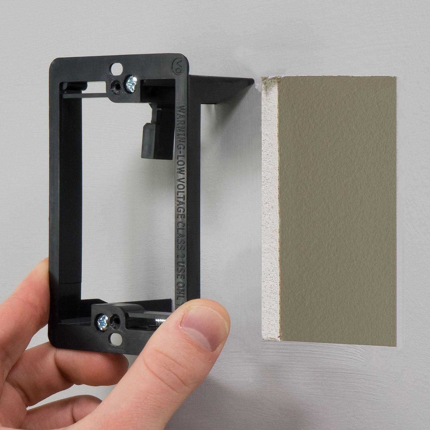 Arlington’s low voltage mounting brackets are an excellent choice for communications cable TV computer wiring or any other class 2 wiring. The single gang non-metallic bracket is CAT 5 UL and CSA listed. It also mounts securely against 1/4″ to 1″ thick wallboard paneling or drywall.