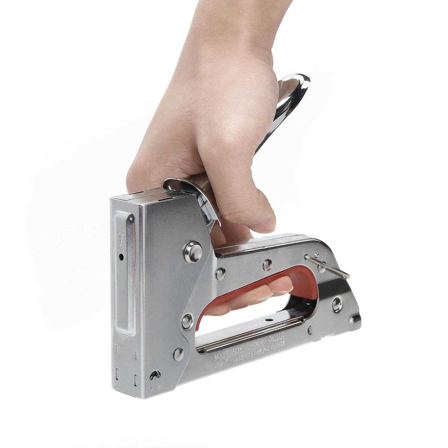 Load full strip of (100) Arrow staples of .030 wire in sizes 1/4in., 5/16in. and 3/8in. staples. Visual refill window. Perfect for screen repairing, light upholstery work, kitchen shelf trimming, closet lining, cornice covering and scores of other light duty household tacking chores. No. JT21M : All steel construction. Jam-proof mechanism. Hand-contoured handle. Built-in staple lifter. Household baked enamel finish. No. JT21CM: Durable hi-impact molded plastic housing. Safety handle lock. All steel channel andtrack for non-wearing, jam-proof performance.