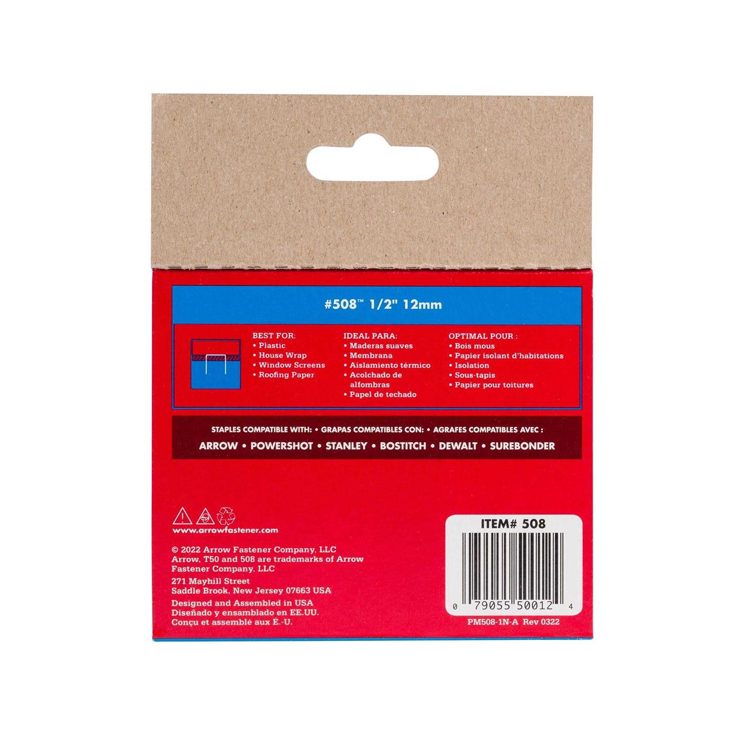 - This size staple is best used for plastics, house wrap, window screens and roofing paper. 1/2″ / 12mm.
