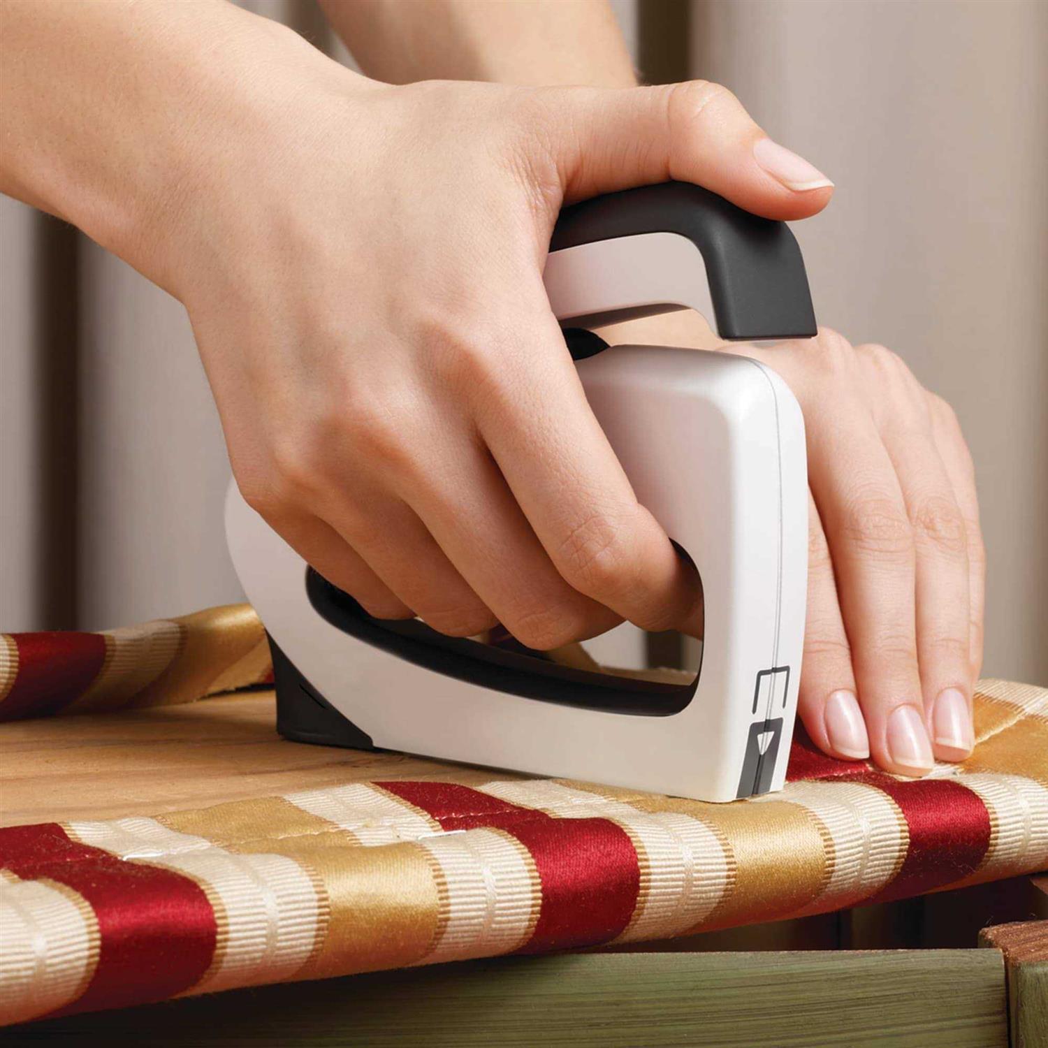 The Arrow TruTac TT21 is a compact forward action staple gun suitable for home projects and supplied in a upholstery kit with tacks, staples and staple puller. The direction of handle is opposite to other staple guns so that you press down right over the point of impact allowing your body weight to assist. Its compact design allows you to get into awkward places as well as allowing for precise positioning of staples. The perfect tool for quick repairs around the house and workshop. Takes JT21 staples 6,8,10 and 12mm length. Supplied with stapler puller tool, 600 x 8mm J21 staples, 25 satin nickle and 25 flat black upholstery tacks.