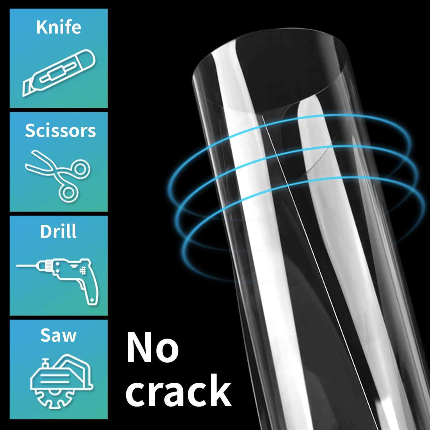 Clear Arylic Sheet: More durable,light-weight, shatter resistant,easy to cut to size,cutting through a laser, tablesaw, jigsaw, drill, router, or bandsaw. Material: Recyclable High-quality PET Sheet Panels is crystal clear,excellent transparency which have a good display effect. Versatile Uses: Picture Frames,dust cover,splashboard,laser engraved signage, hobby display cases, art protector, tabletop protector, home décor, shelving. Performance: Good folding resistant,easy to clean with damp cloth and detergent. Notes: Covered on both sides with a removable protective film to prevent from scratching.Package contains 10 pcs PET Sheets. Especially can be a replacemnt of the glass. It is more afforable than the glass.There are various of uses: 1. As a Kitchen Splashback:Low gas and water vapor permeability, both excellent resistance to gas, water, oil and odor. 2. Canbinet Doors: easy to cut the size you would like, and can be manoeurved into position without breakage. 3.great window for a doll house 4.dioramas windows 5. fish tank 6. broken glass replacement