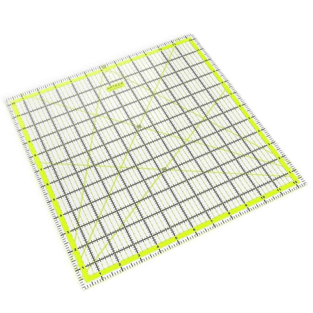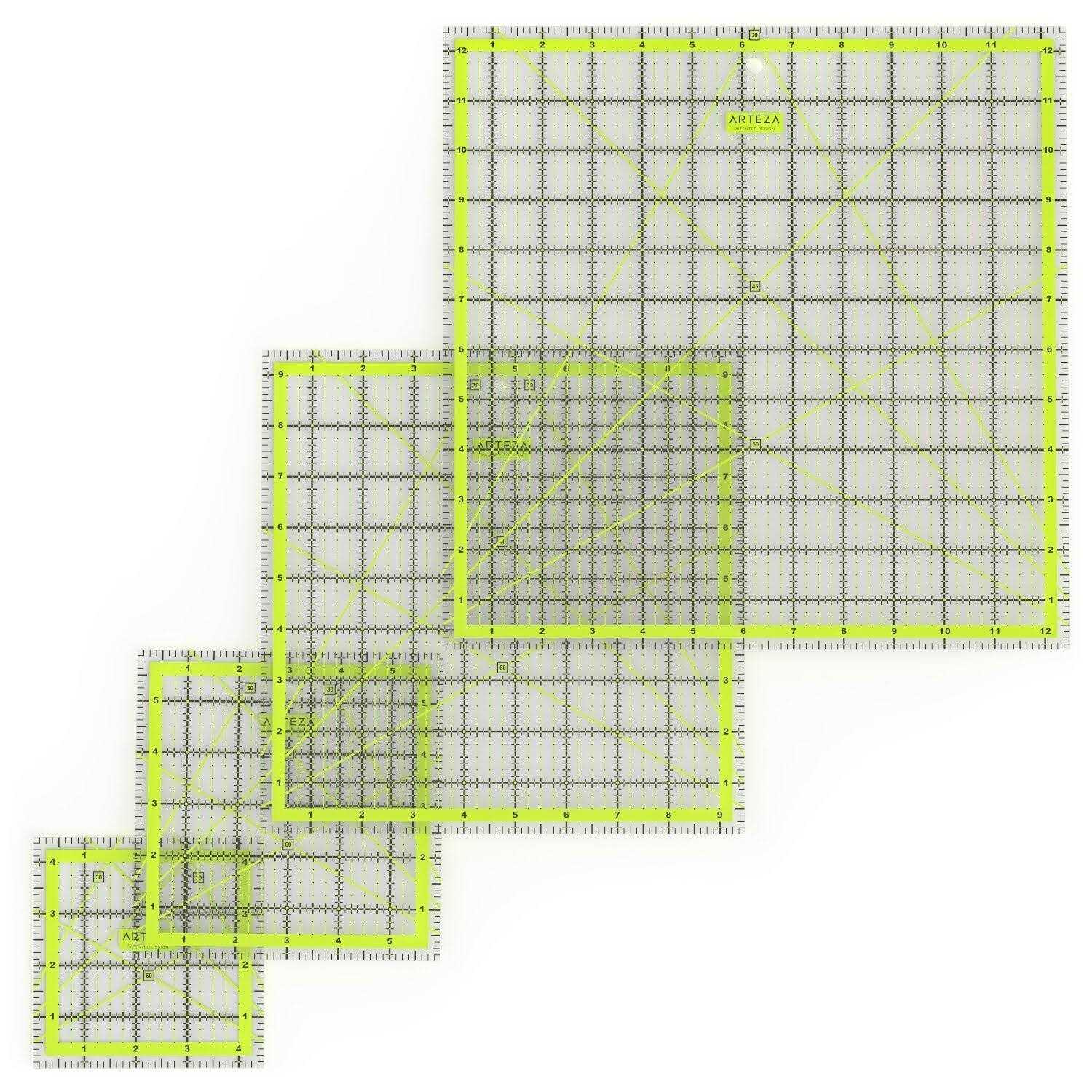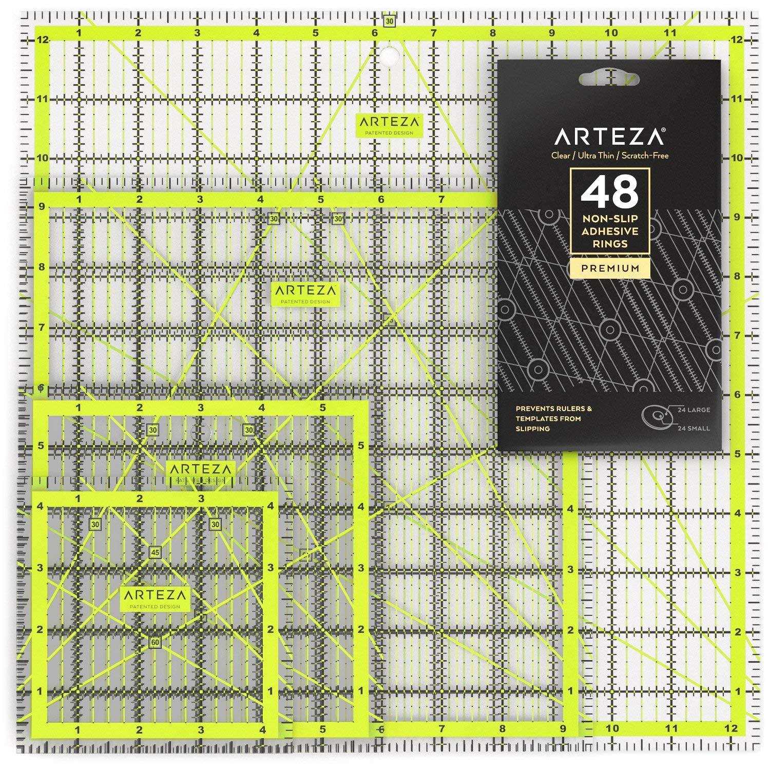 Arteza Acrylic Quilters Ruler & Non Slip Rings – Double-Colored Grid Lines Set 4