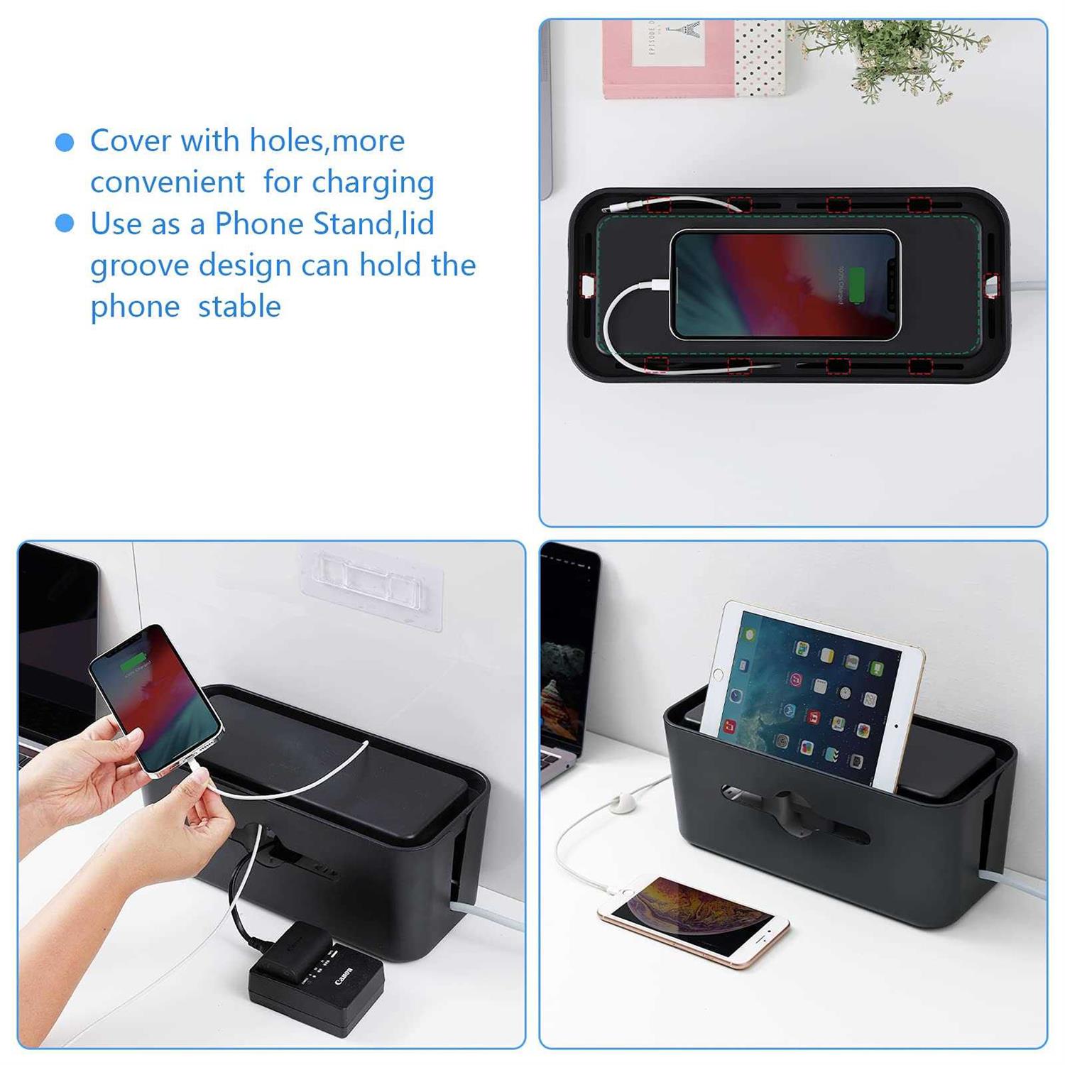 AskLady Cable Management Box,Cord Box to Hide Power Strips,Cord Organizer Hider to Conceal The Electrical Wires from Tv Computer Under Desk and on