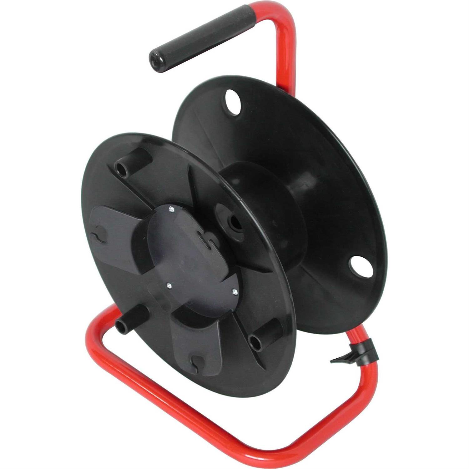 Cord Reels by Audio2000’S. Details:The ADC2716 is a cable reel that can hold 300 feet of 6mm cable. The steel frame is in red and the cable drum is made of plastic.