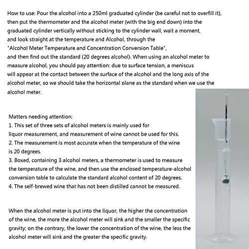 - Includes four pieces (three alcohol meter, one thermometer);Length : 20cm, 14.7 cm;.