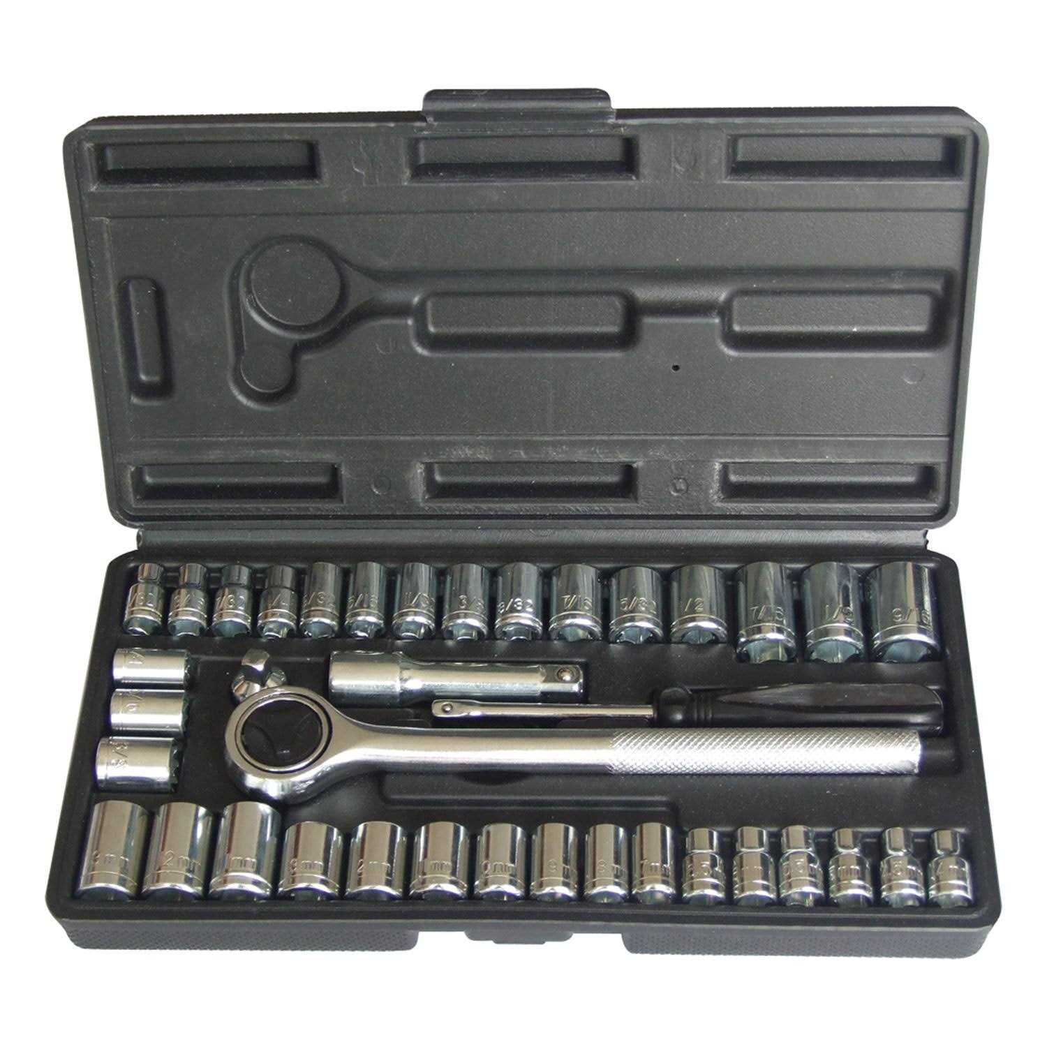 Drop forged ratchet metric & SAE sockets.Durable reusable storage box40-piece socket set; metric and English sizes3/8 In. reversible ratchet and accessoriesChrome plated to resist rust